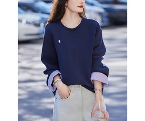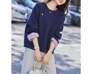 大人可愛いシンプルなバイカラーのスウェットトレーナー。