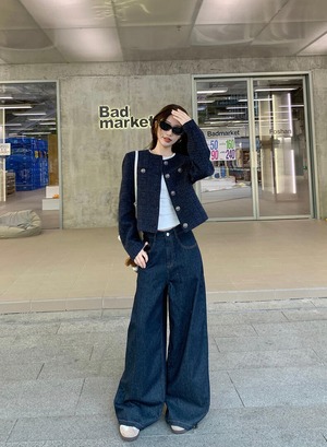 【ジャケット】 大きいサイズ テーラード ジャケット レディース アウター おしゃれ ノーカラー ツイード ジャケット ブルゾン 卒業式 入学式 卒園式 入園式 七五三 お宮参り オケージョン 春 秋 冬 20代 30代 40代 ショート丈 秋 冬 オフィス可愛い きれいめ ママ 服装 母 ネイビー 青 S M L XL 2XL