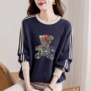 【トレーナー】大きいサイズ トレーナー レディース おしゃれ 韓国 スウェット トレーナー レディース カットソー 長袖 20代 30代 40代 春 秋 冬 レディース トップス 大人 可愛い ネイビー 青 S M L XL 2XL