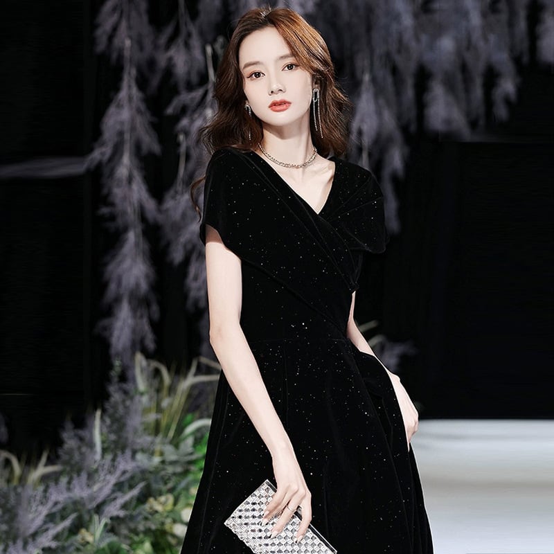 ベルベット素材であたたかく秋冬のパーティーシーンにおすすめ。