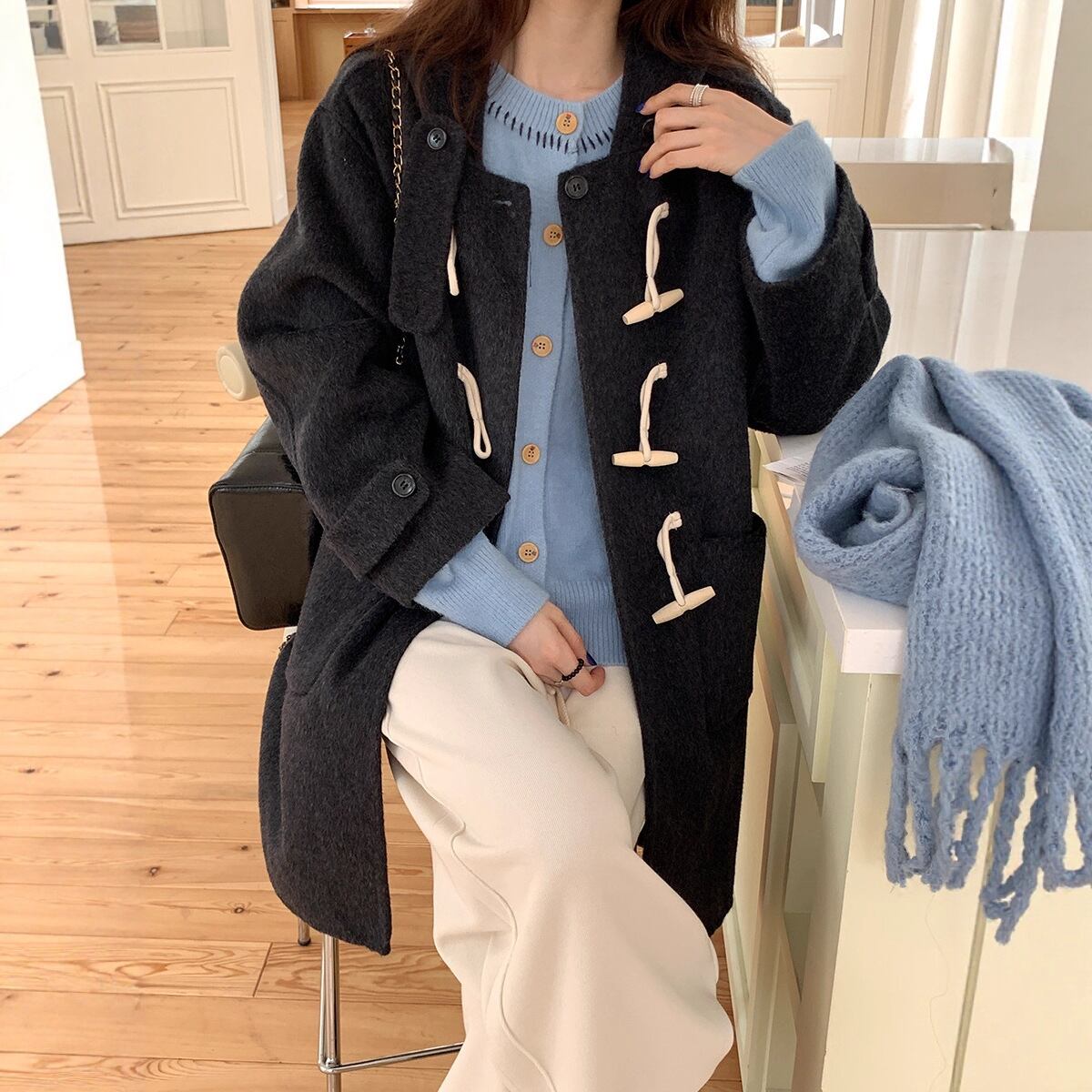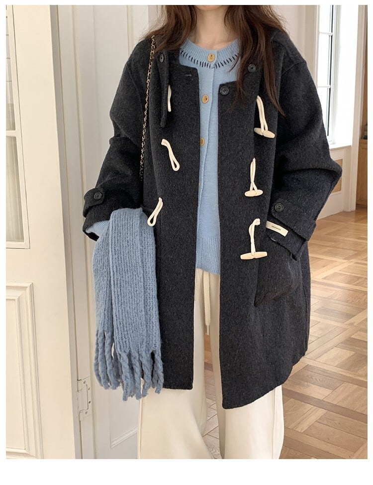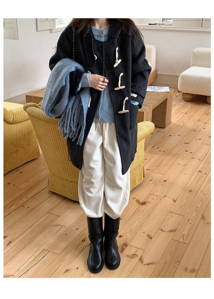 大人エレガントなミドル丈のダッフルコート。