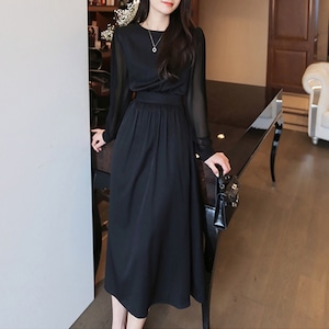 【パーティードレス】 パーティードレス かっこいい 結婚式 お呼ばれドレス 結婚式のお呼ばれ ワンピース シンプル ミモレ ワンピース 20代 30代 40代 成人式 同窓会 卒業式 入学式 卒園式 入園式 謝恩会 袖あり 体型カバー フォーマルドレス 結婚式フォーマル お呼ばれ 二次会 フォーマルワンピース おしゃれ ブラック 黒 S M L XL