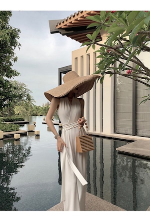 ウエストリボンでウエストを結わくことで華奢に細見え効果も。