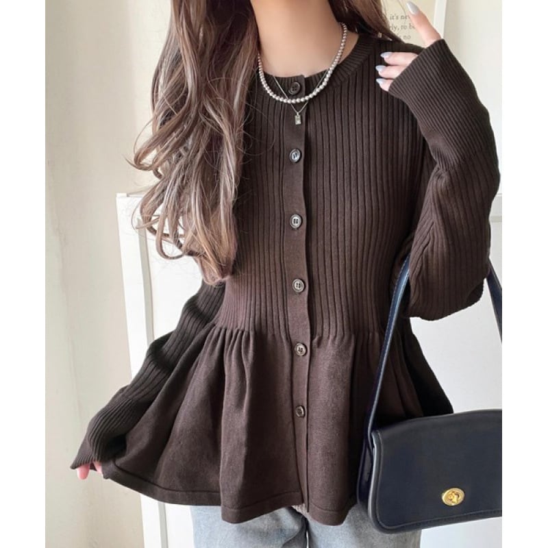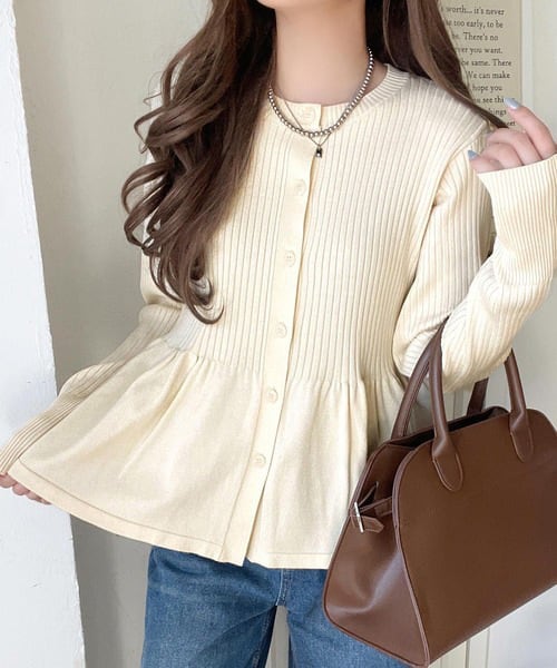 大人可愛いペプラムデザインのカーディガン。