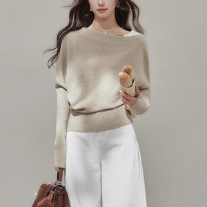 デコルテがアシンメトリーのエレガントなニットセーター。