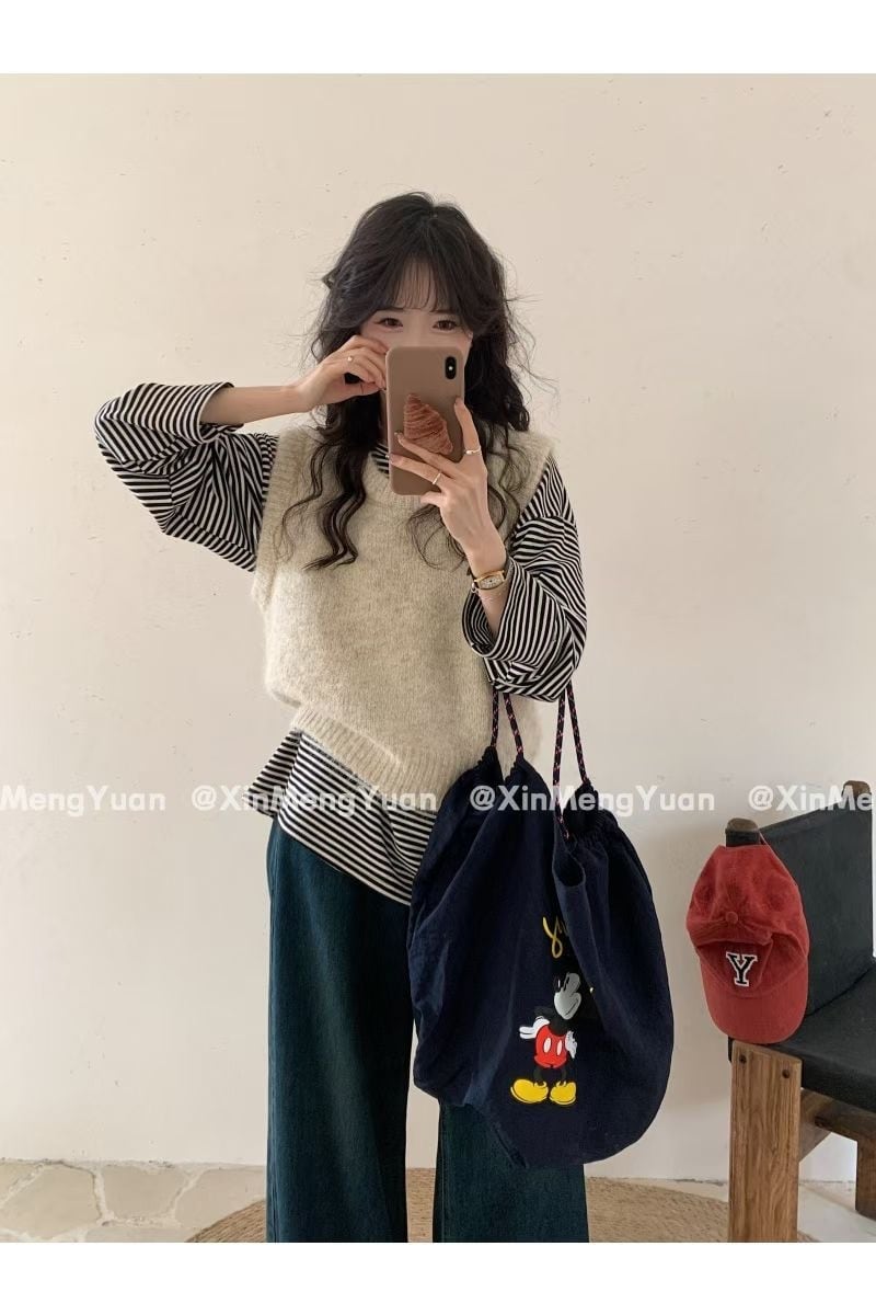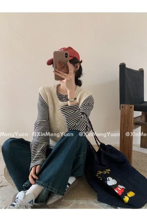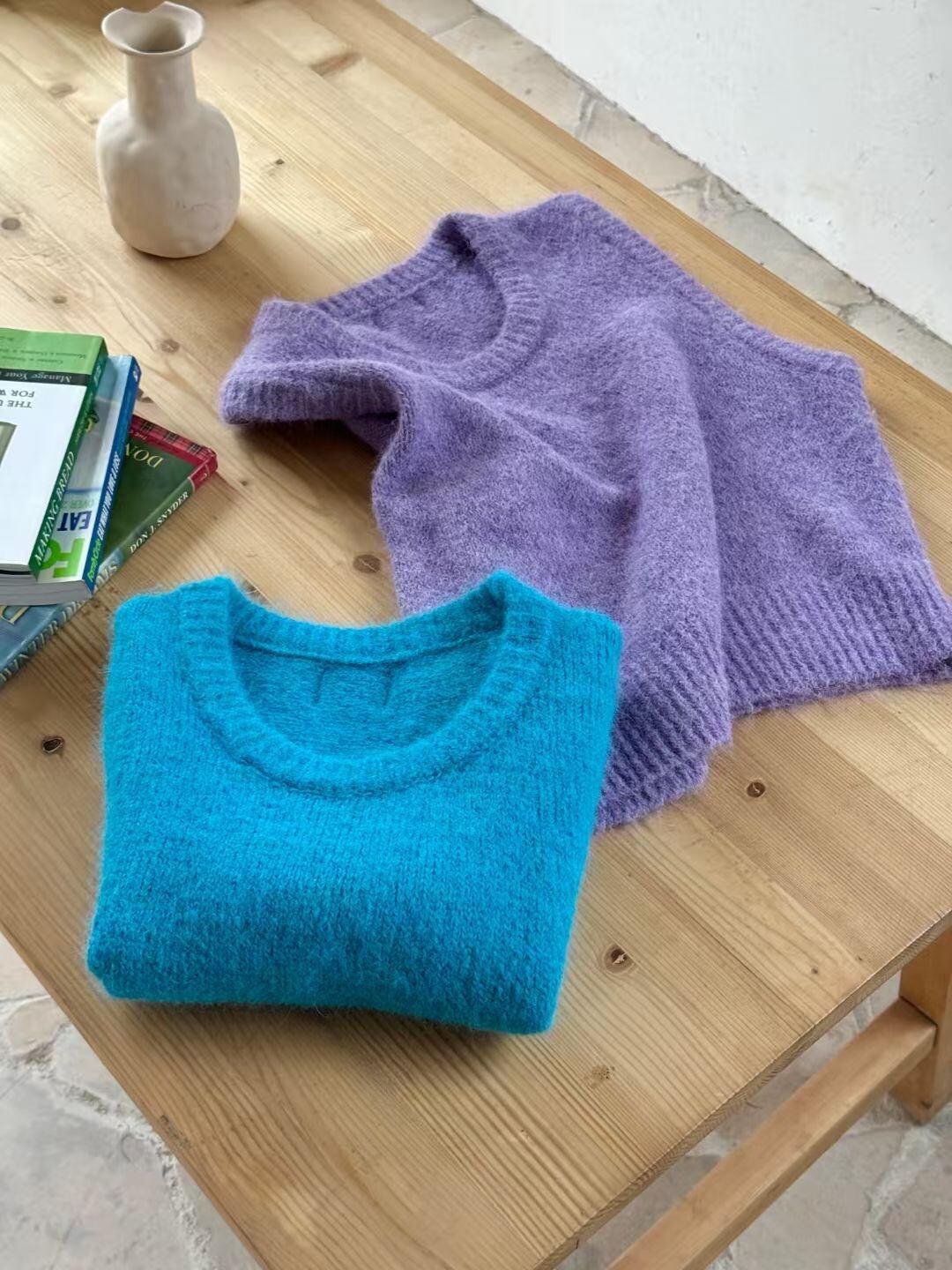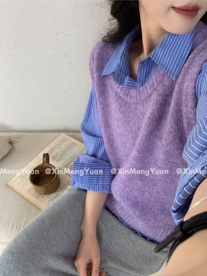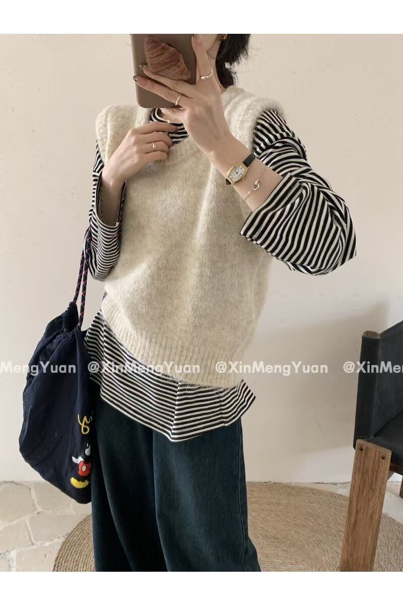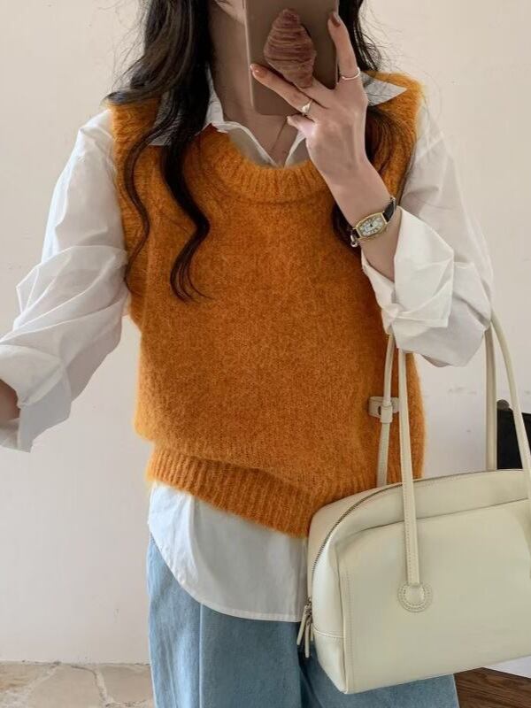 大人可愛いモヘアライクニットベスト。
