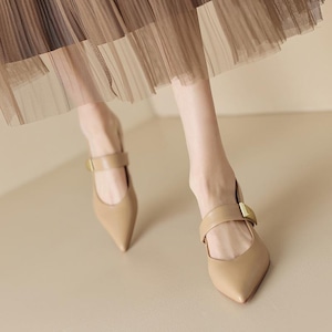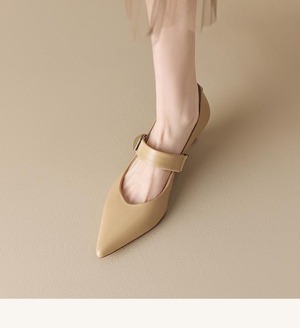 ストラップが大人可愛いポインテッドトゥのパンプス。