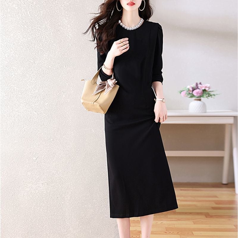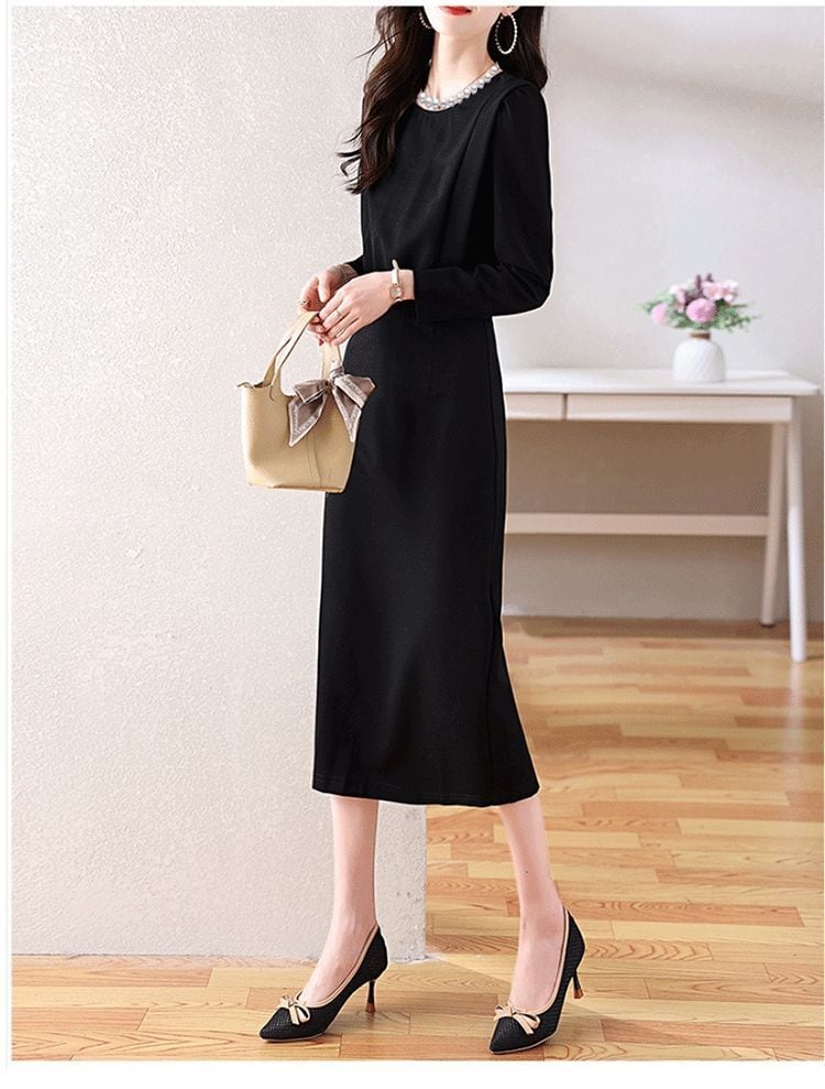 【パーティードレス】大きいサイズ パーティードレス かっこいい 結婚式 お呼ばれドレス 結婚式のお呼ばれ ワンピース シンプル ミモレ ワンピース 20代 30代 40代 成人式 同窓会 卒業式 入学式 卒園式 入園式 謝恩会 袖あり 体型カバー フォーマルドレス 結婚式フォーマル お呼ばれ 二次会 フォーマルワンピース おしゃれ ブラック 黒 M L XL 2XL 3XL