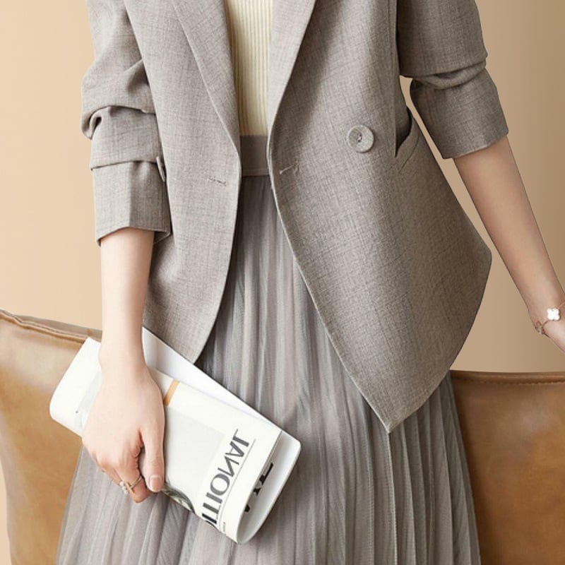大人エレガントなジャケット+プリーツスカートのセットアップ。