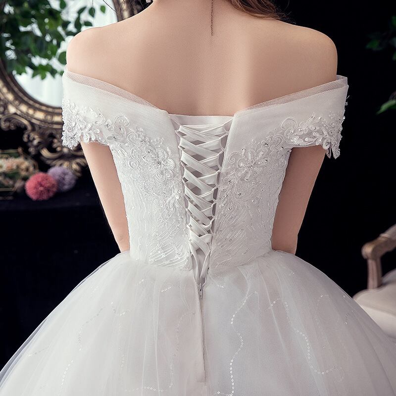 大人エレガントなオフショルダーのウェディングドレス。