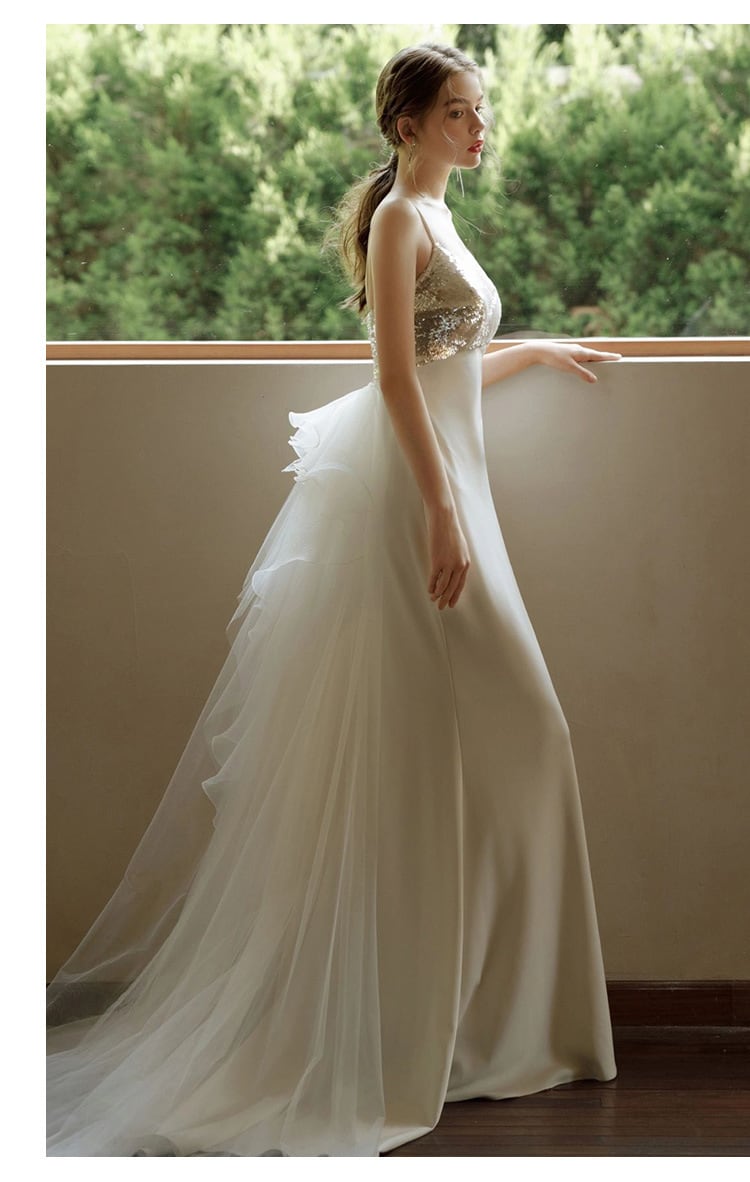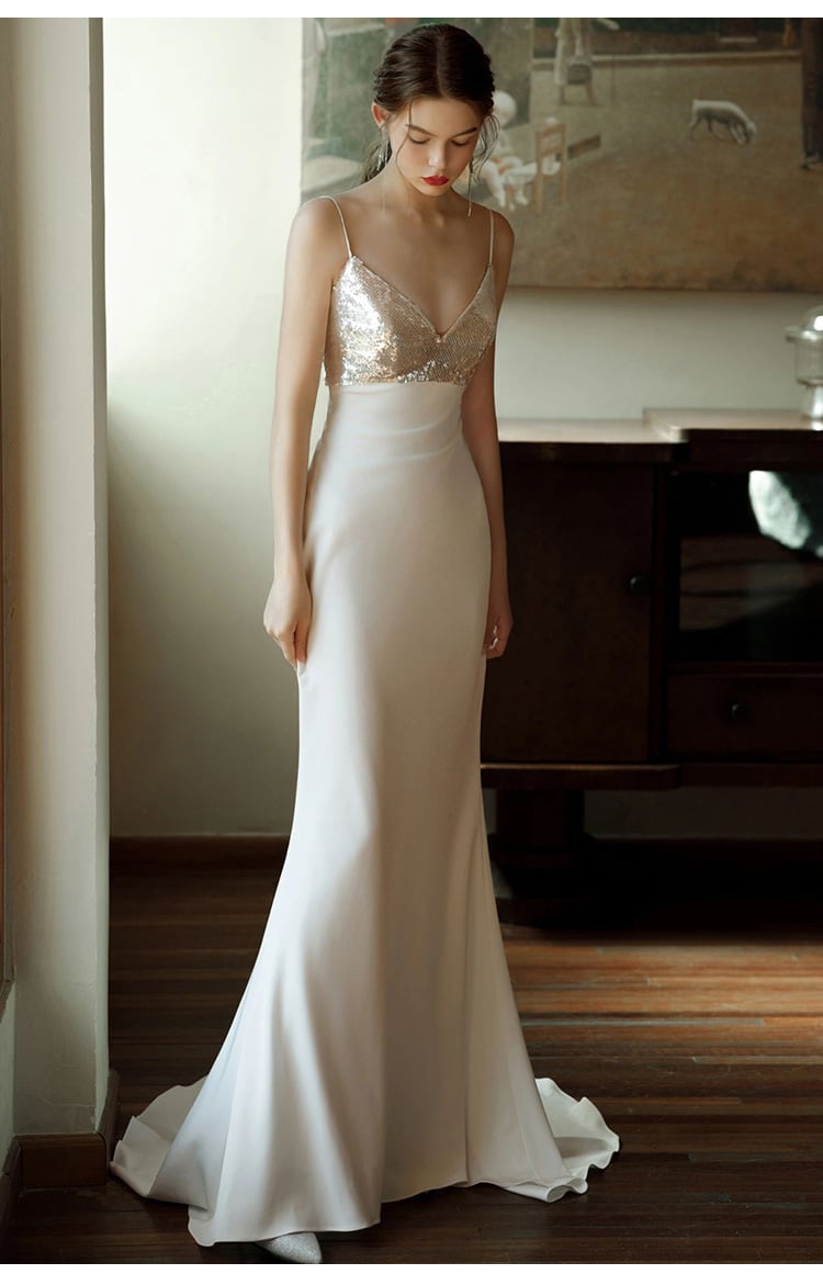 マーメイドラインでボディにフィットしたシルエットで女性らしさを引き立てる。