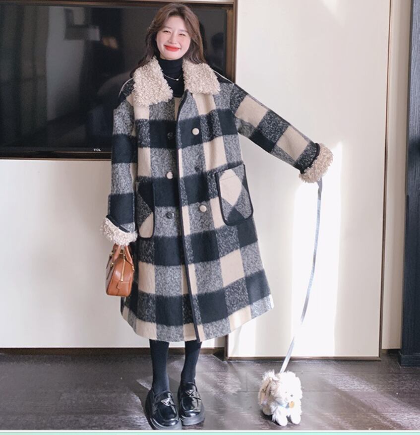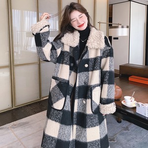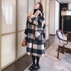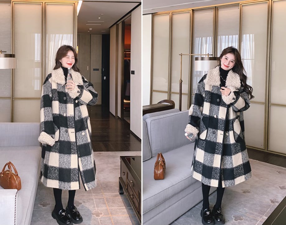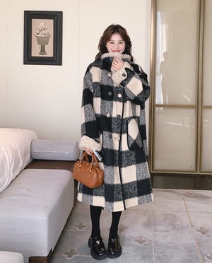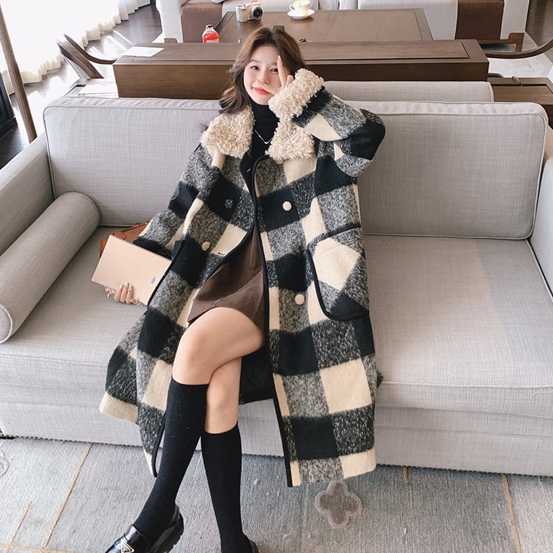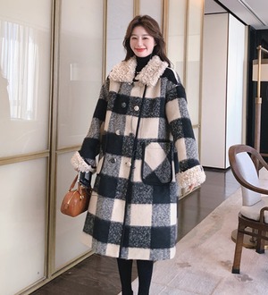 大人可愛いブロックチェックのチェスターコート。