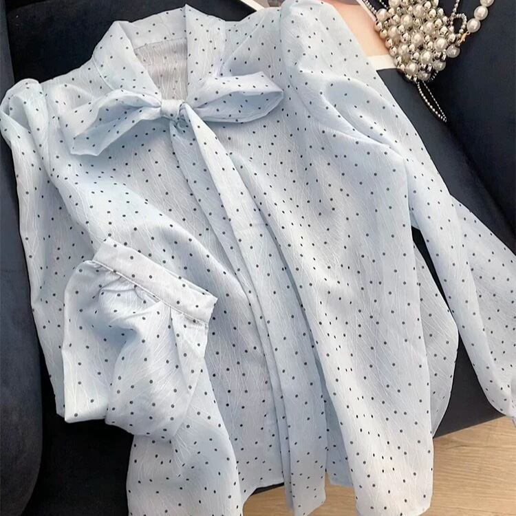 【ブラウス】 ブラウス レディース 大人 可愛い トップス シャツ ブラウス 韓国 ブラウス 春 秋 冬 20代 30代 40代 シンプルオフィス レディース 長袖 フォーマル 体型カバー きれいめ ドット ブルー 青 S M L XL