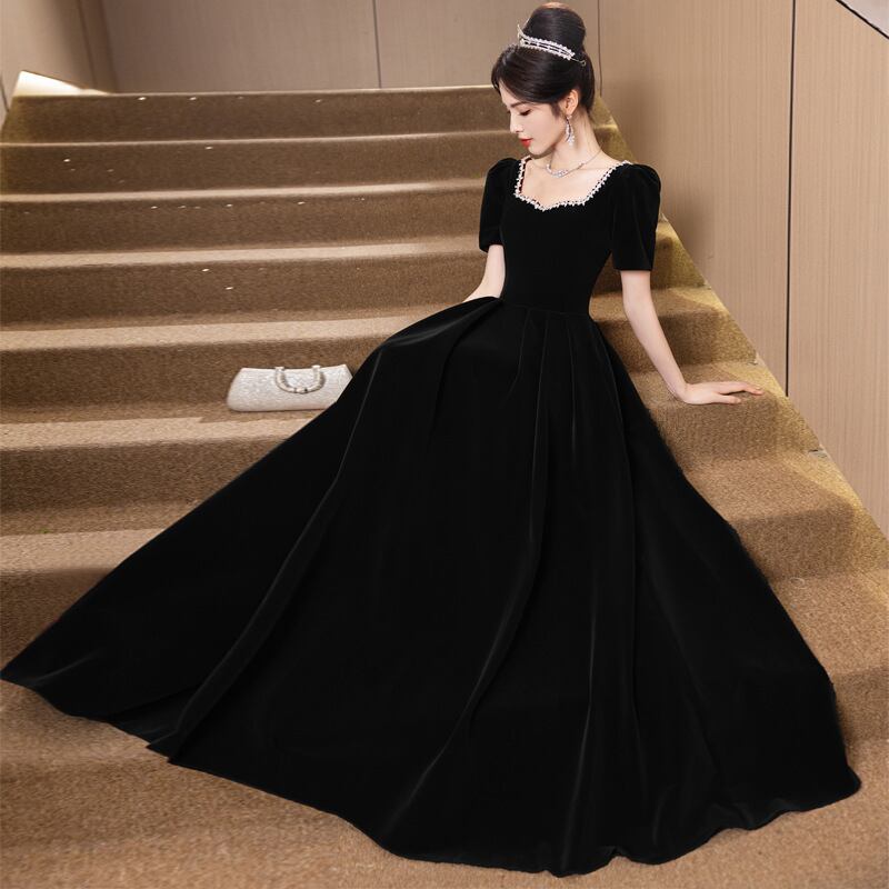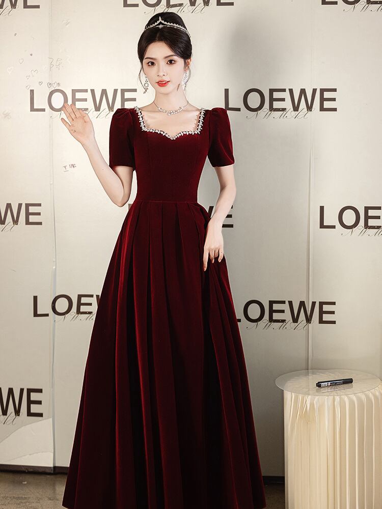 大人エレガントなベルベット素材のパーティードレス。