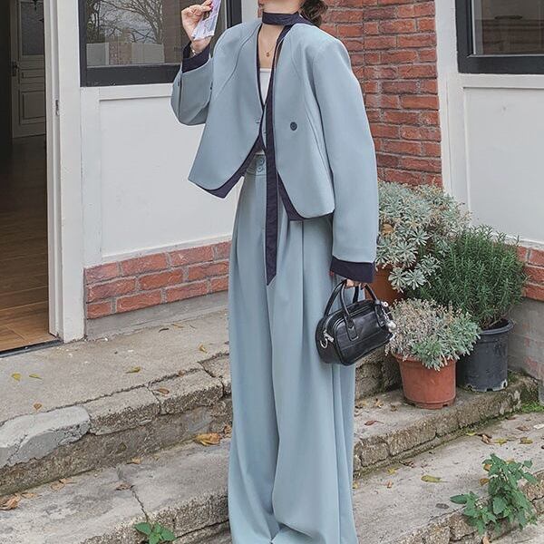 大人エレガントなノーカラーセットアップスーツ。