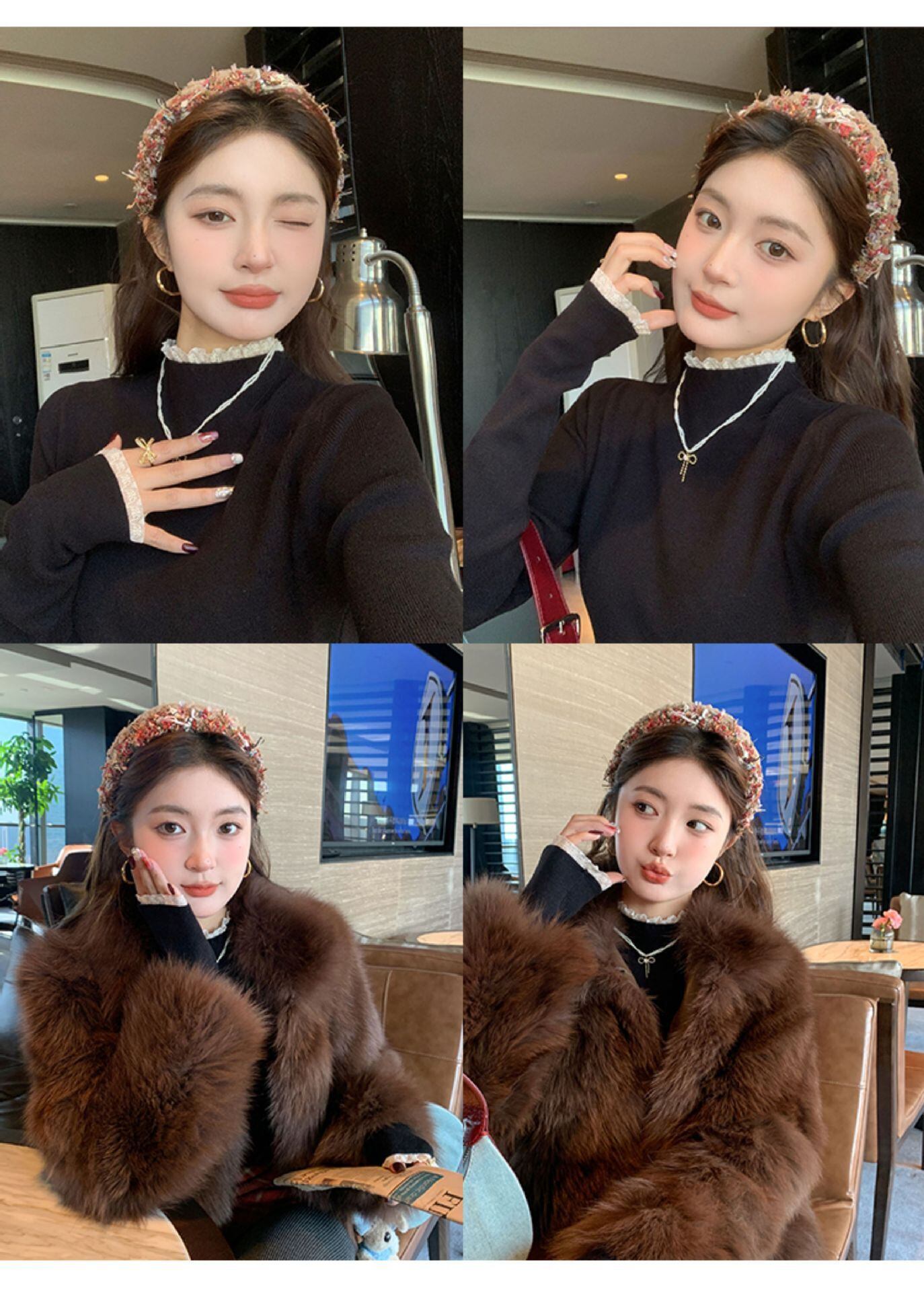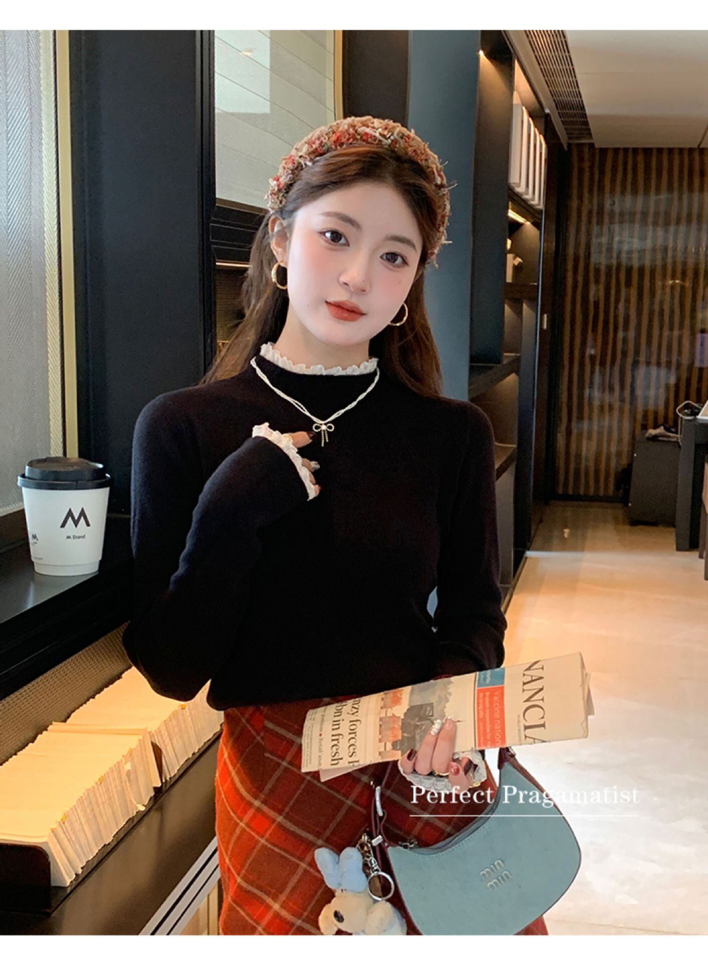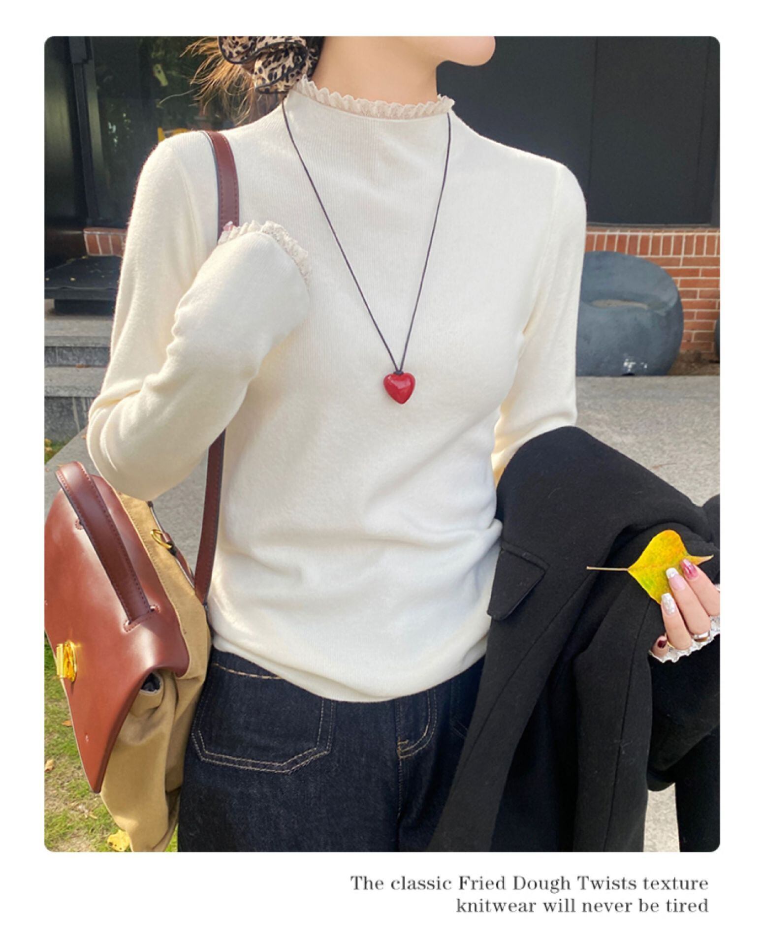 襟元とお袖のフリルが大人可愛いハイネックのカットソー。