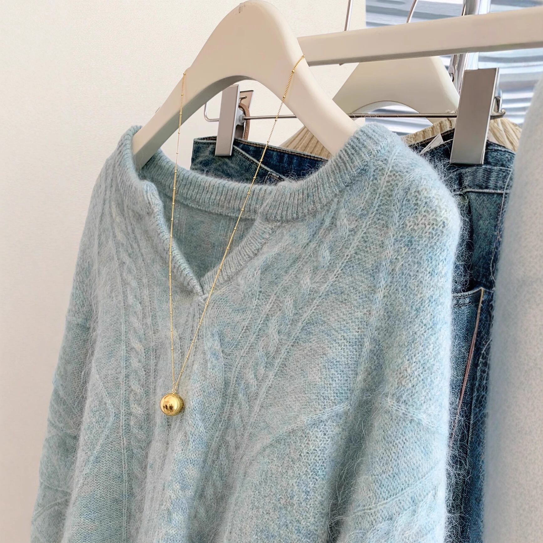 【ニット】 ニット セーター レディース おしゃれ かわいい 韓国 トップス 長袖 20代 30代 40代 春 秋 冬 レディース ニット ライトブルー 青 グレー