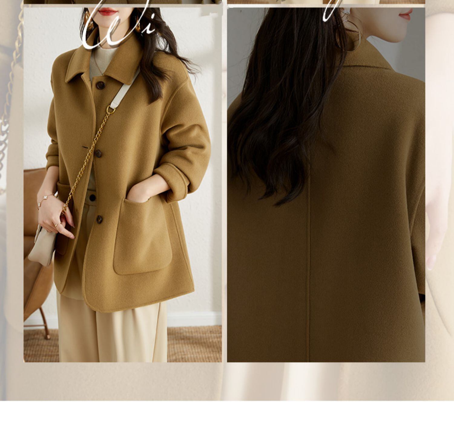 シングルブレストで縦にすとんと落ちるシルエットで細見え効果。
