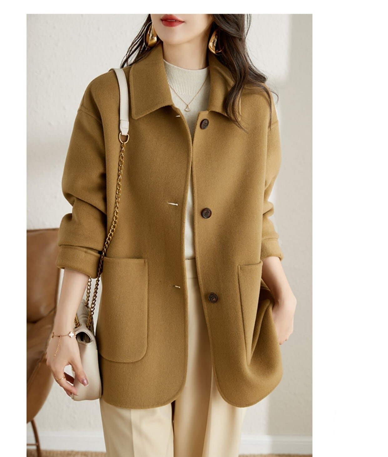 大人エレガントなミドル丈のチェスターコート。