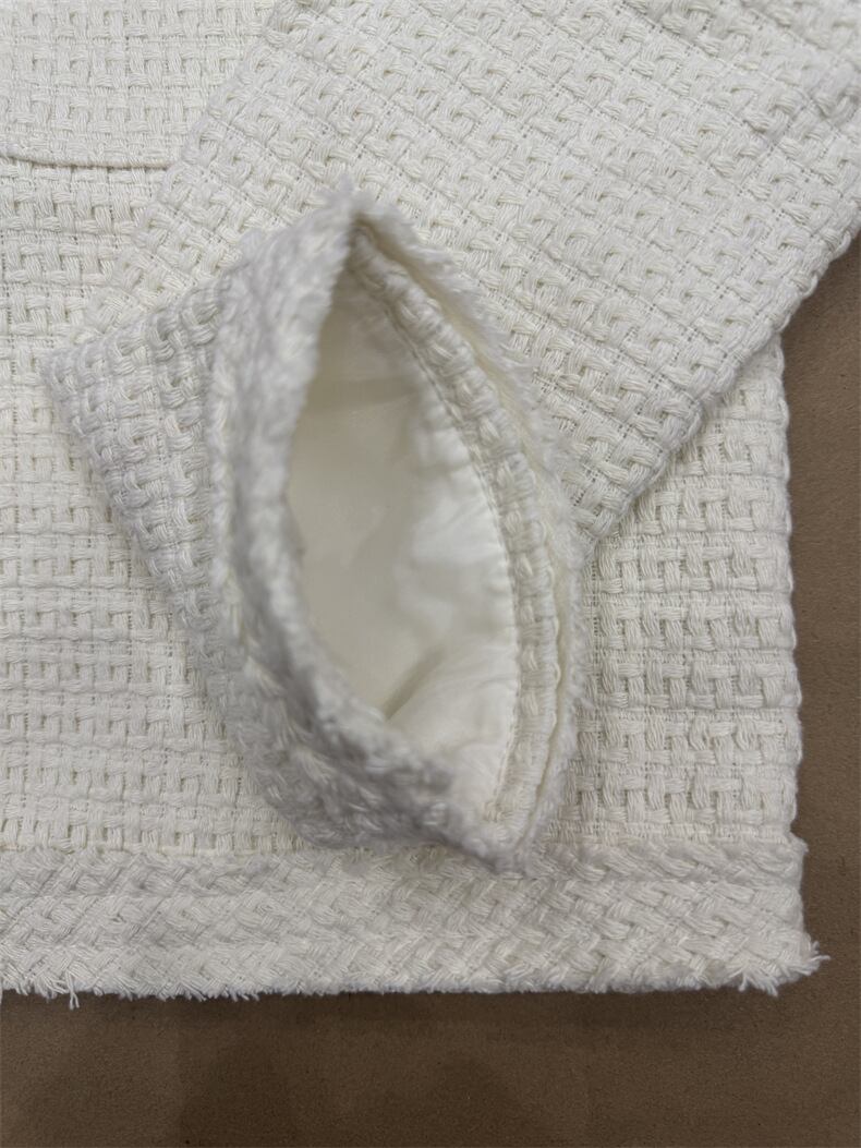 大人エレガントなツイード生地のノーカラージャケット。