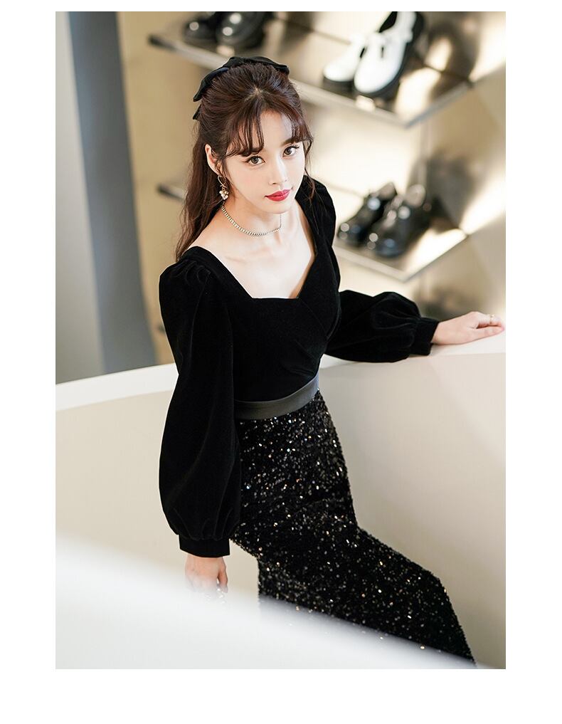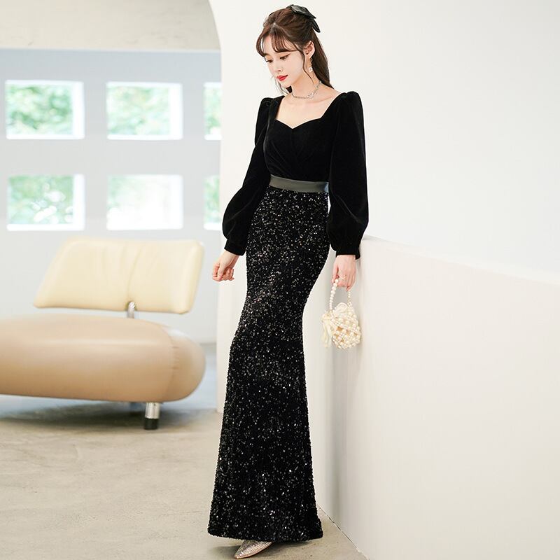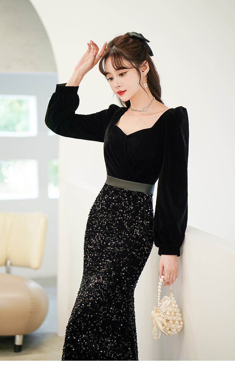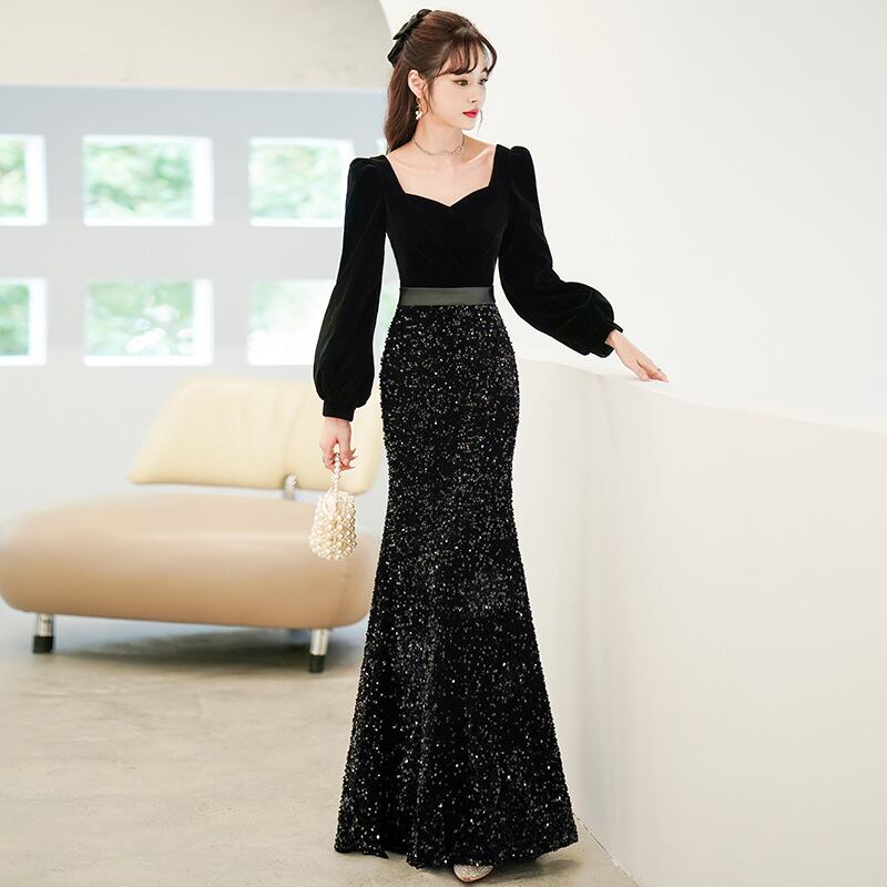 大人エレガントなベルベット素材のマーメイドラインドレス。