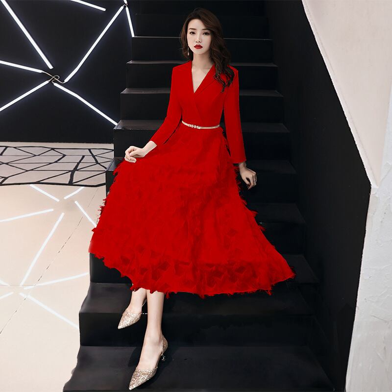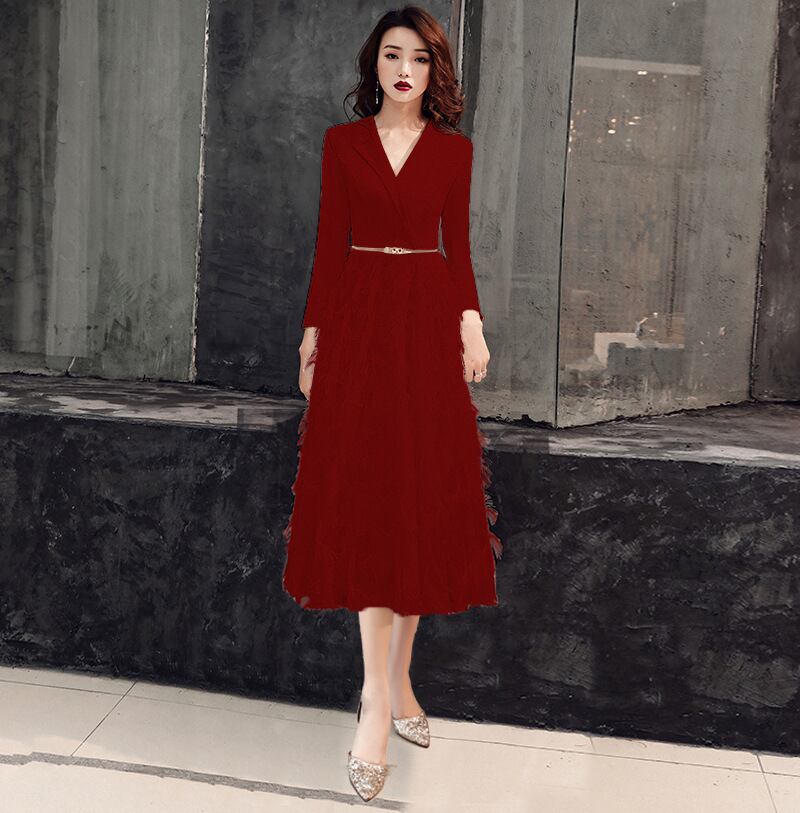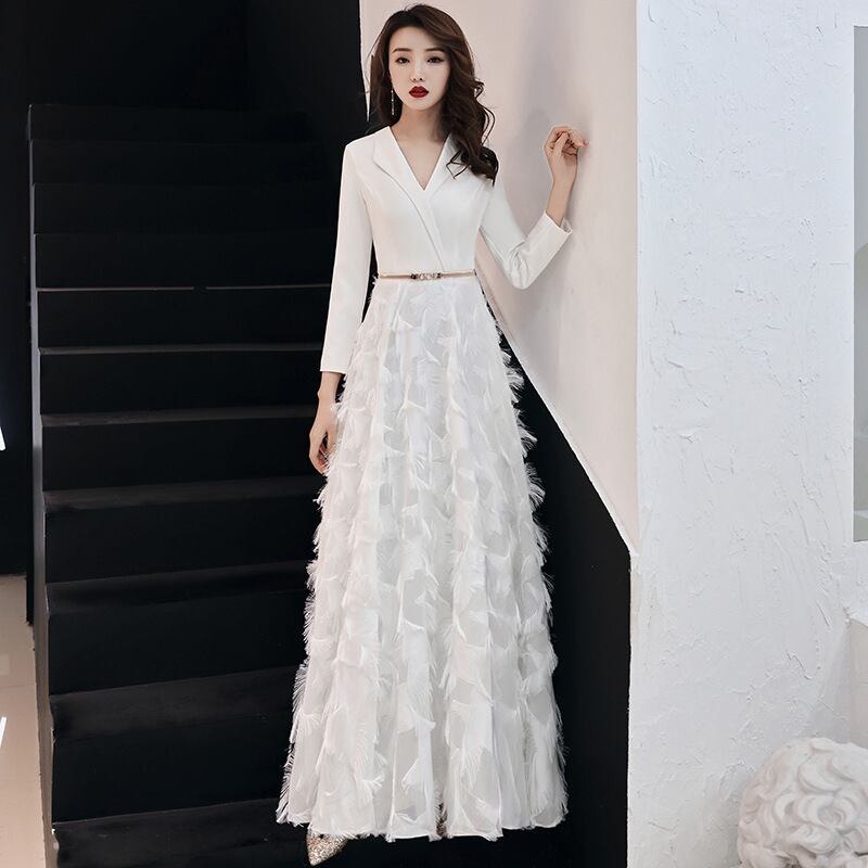 大人エレガントなフェザータッチのパーティードレス。