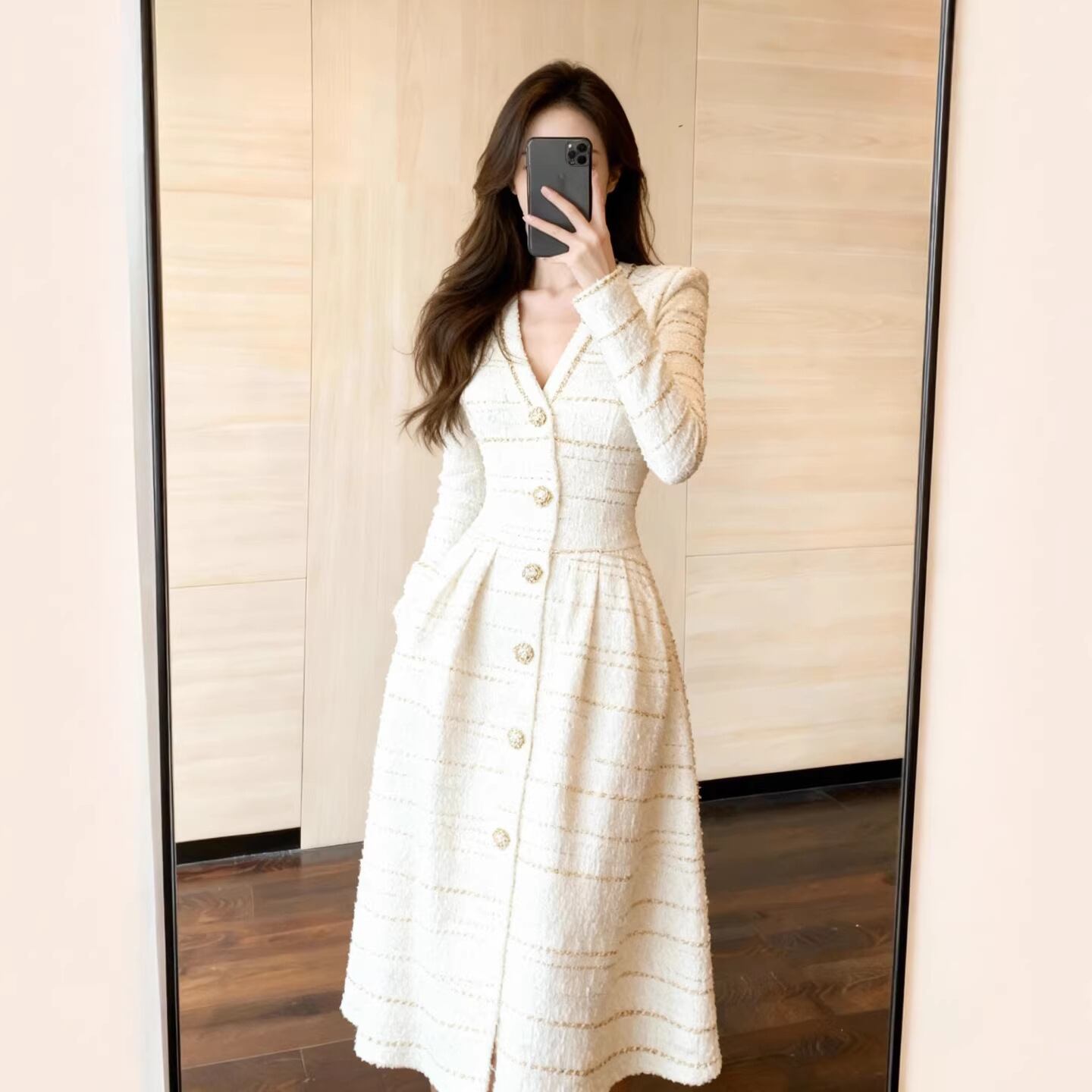 ウエストがフィットしたシルエットでメリハリの効いたボディラインに。