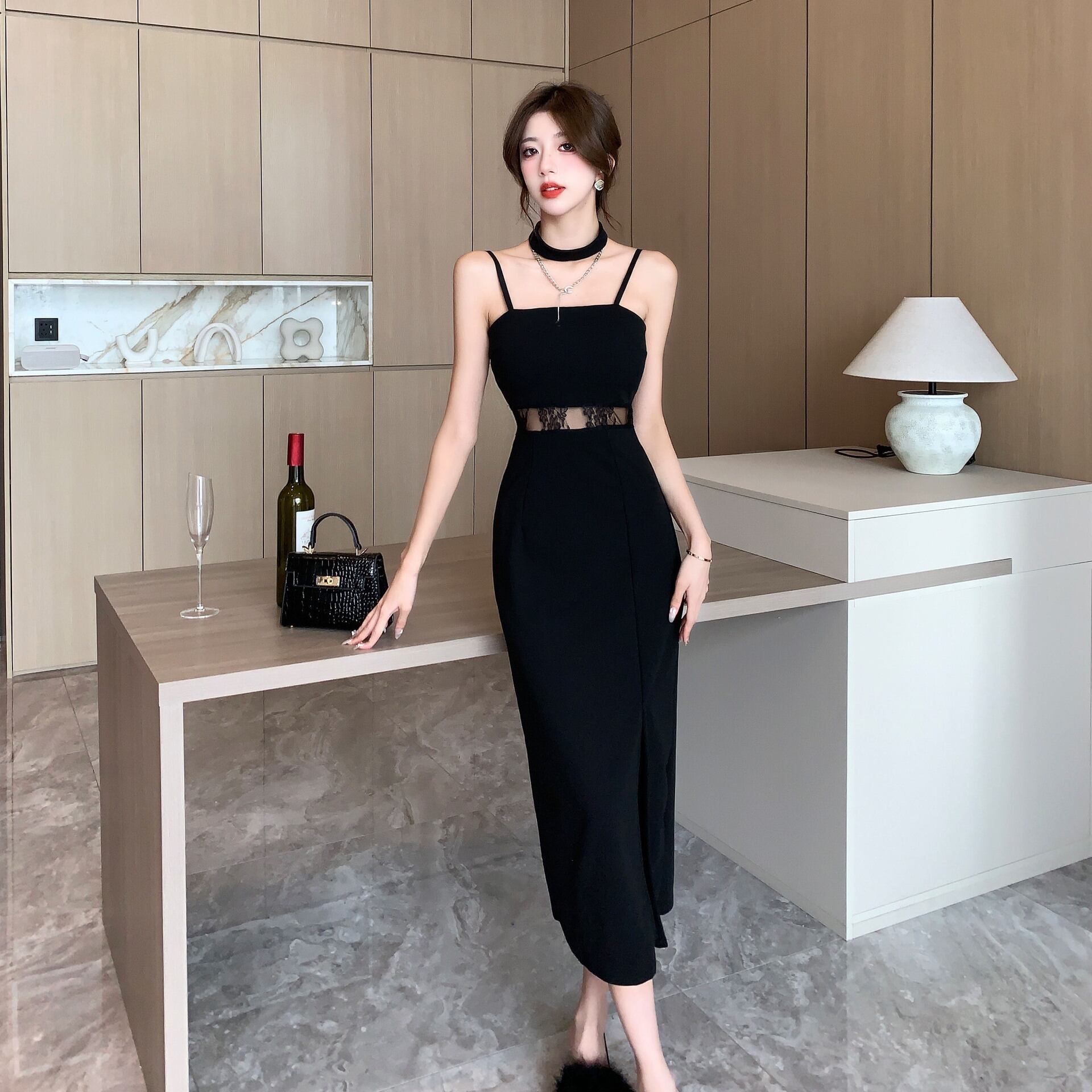 ウエストがレース使いのシースルーとなっておりちょっぴりセクシーに。
