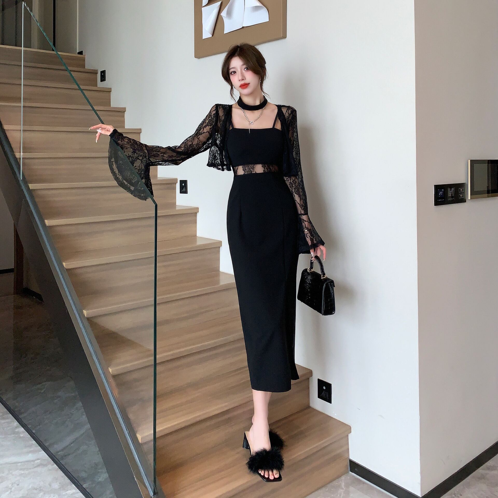 【パーティードレス】 パーティードレス かっこいい 結婚式 お呼ばれドレス 結婚式のお呼ばれ ワンピース シンプル ロング ワンピース 20代 30代 40代 成人式 同窓会 卒業式 入学式 卒園式 入園式 謝恩会 袖あり 体型カバー フォーマルドレス 結婚式フォーマル お呼ばれ 二次会 フォーマルワンピース おしゃれ セットアップ 2点セット ブラック 黒 S M L XL