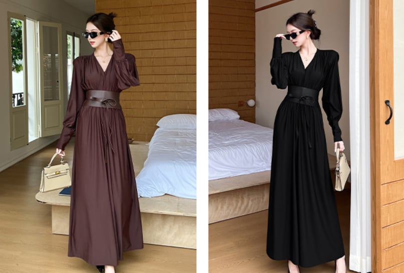 流れるようなドレープ感で歩くたびに優雅に揺れ動く。