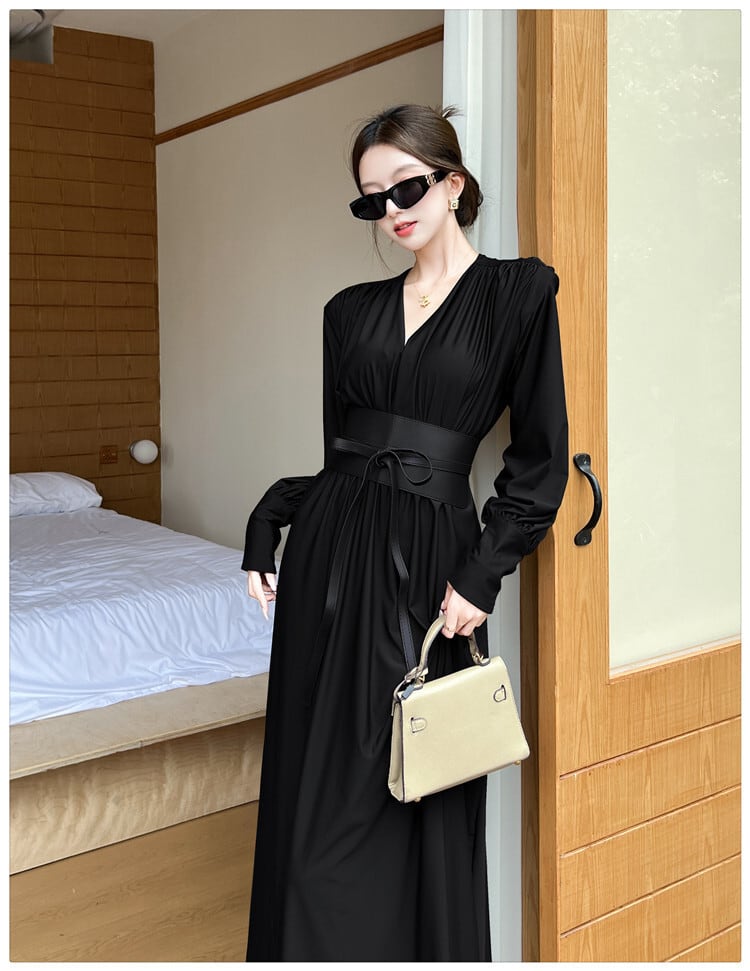 ハイウエストのベルト使いで腰まわりをすっきりと華奢な印象に。