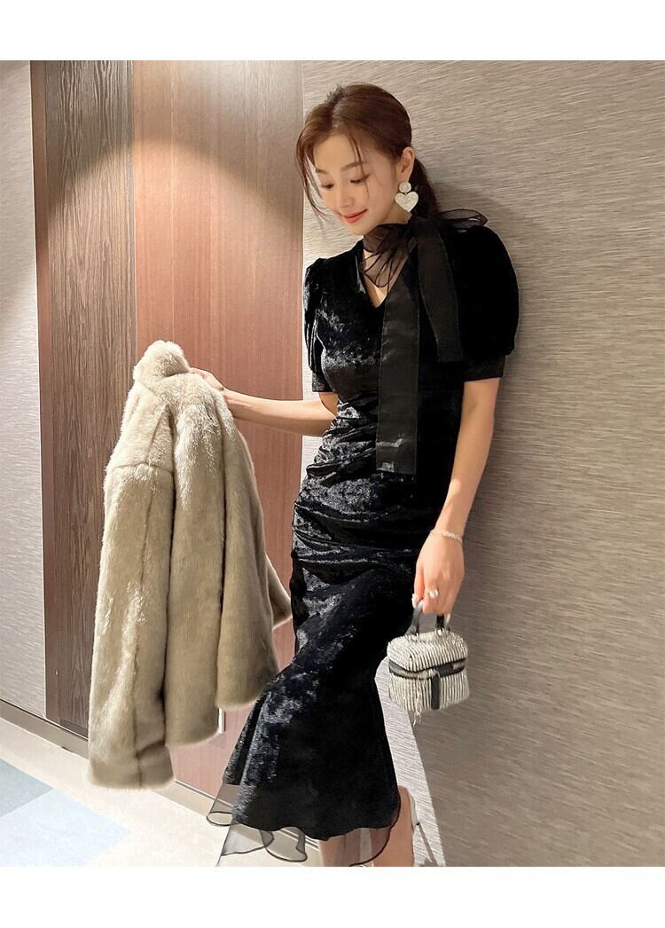 【パーティードレス】 パーティードレス かっこいい 結婚式 お呼ばれドレス 結婚式のお呼ばれ マーメイド ワンピース シンプル ミモレ ワンピース 20代 30代 40代 成人式 同窓会 卒業式 入学式 卒園式 入園式 謝恩会 袖あり 体型カバー フォーマルドレス 結婚式フォーマル お呼ばれ 二次会 フォーマルワンピース おしゃれ ブラック 黒 S M L XL