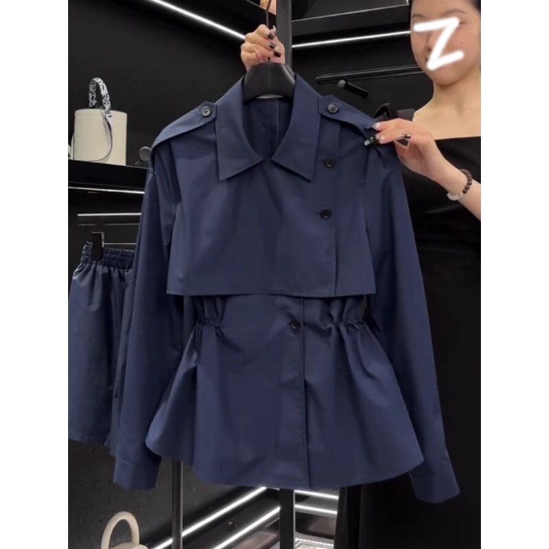 大人エレガントなネイビーカラーのミドル丈トレンチコート。