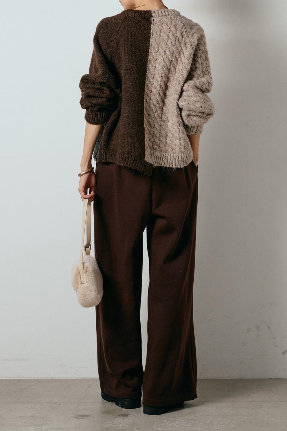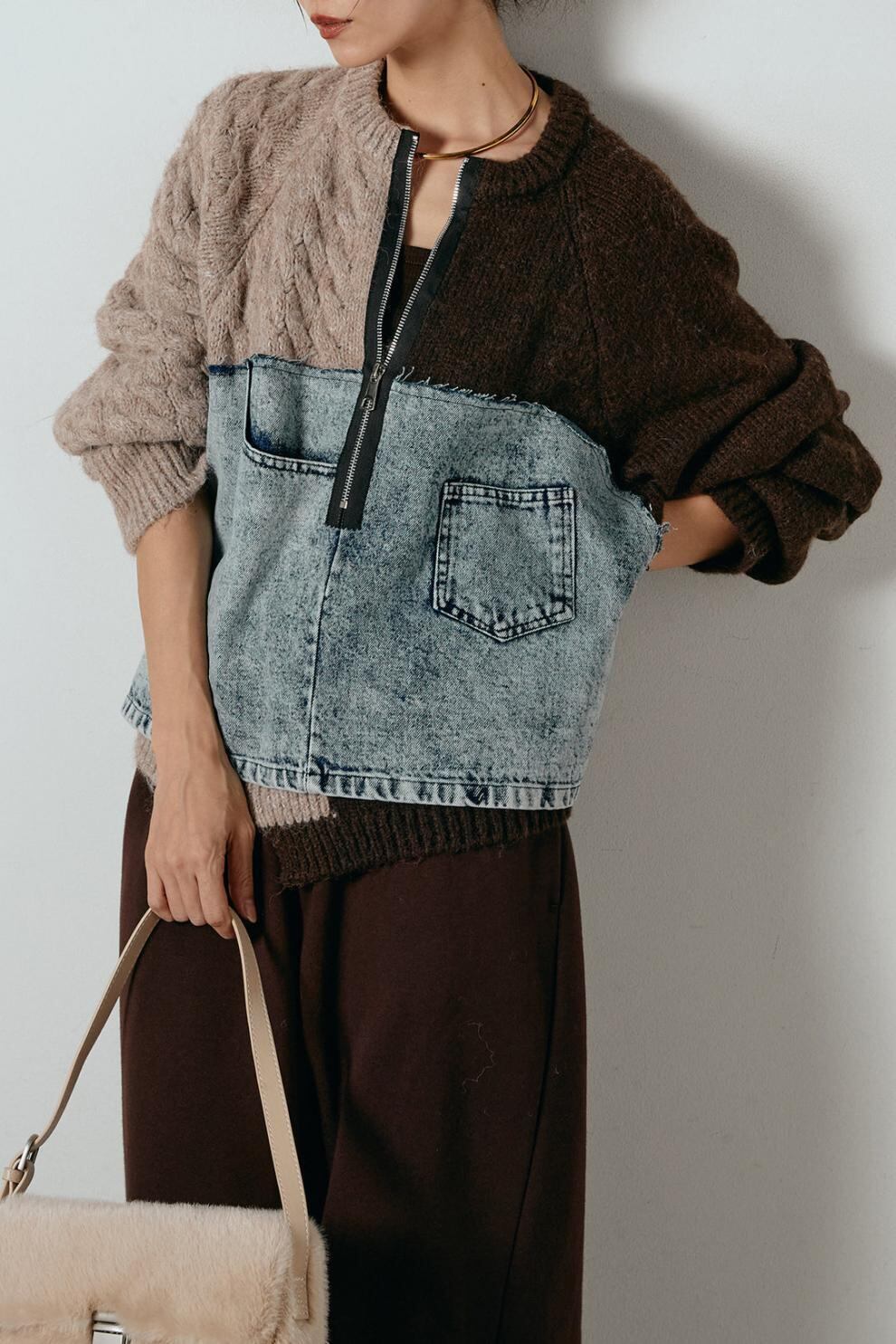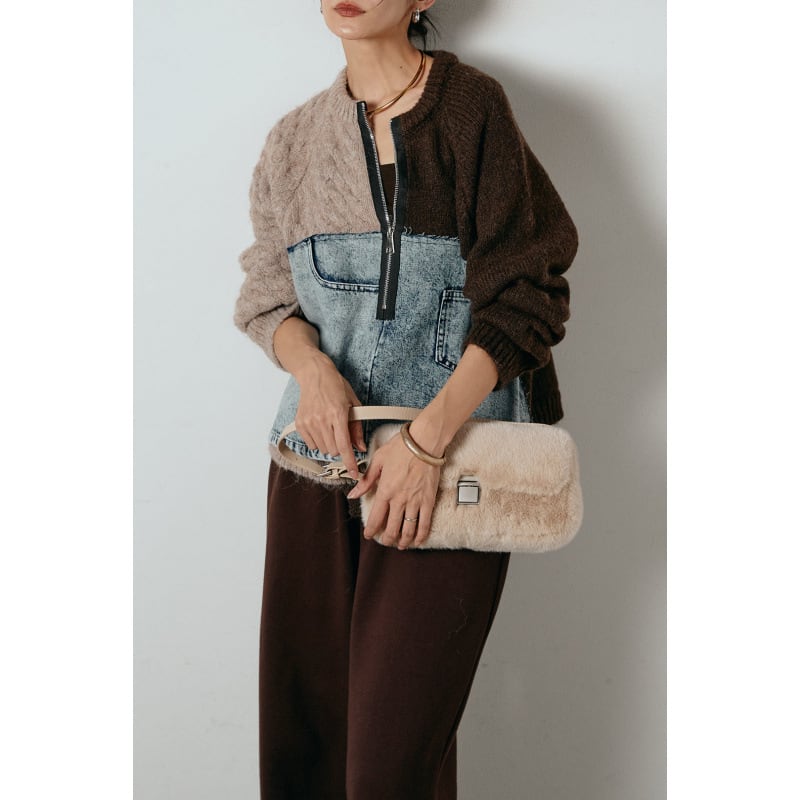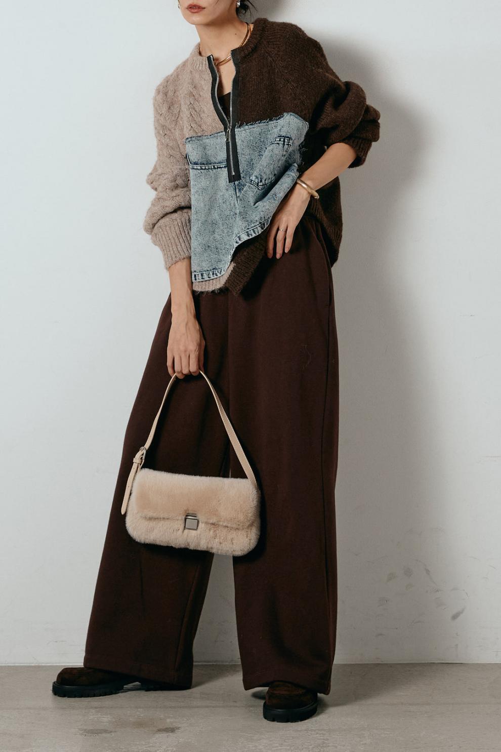 大人カジュアルなドッキングデニムニットセーター。