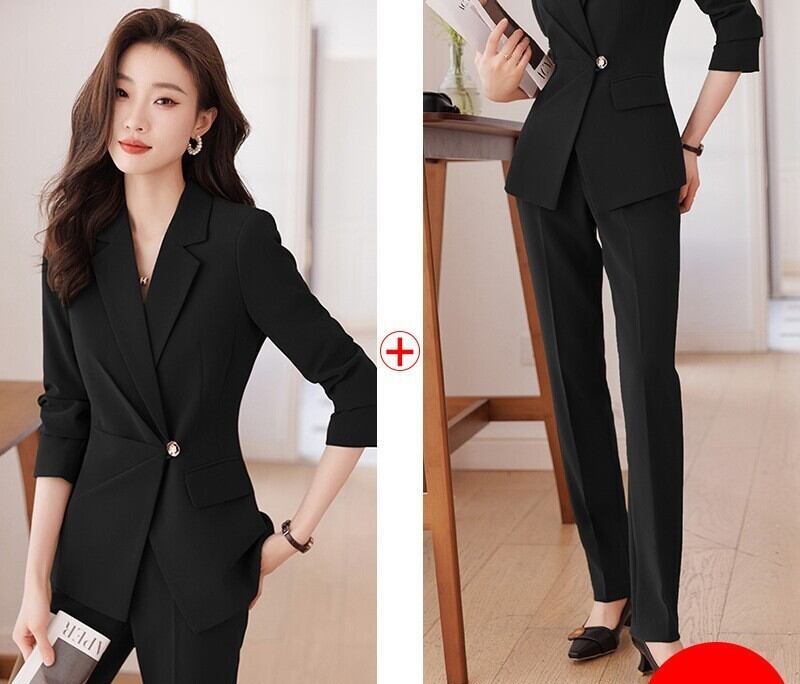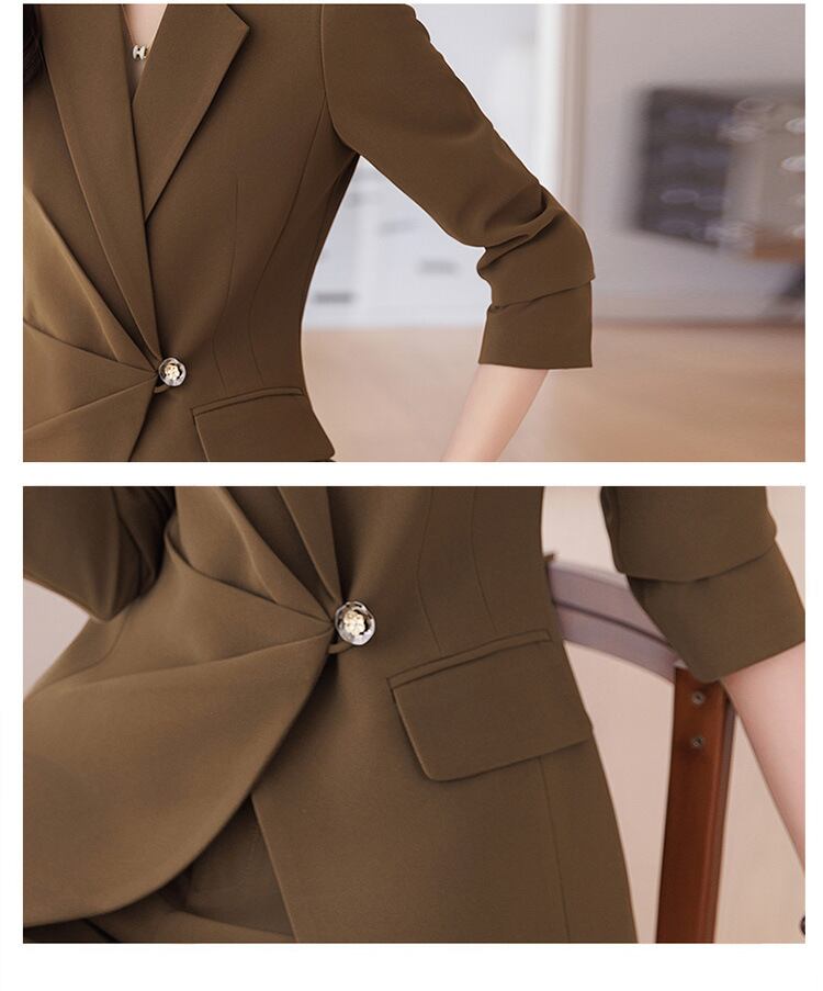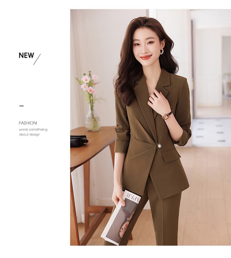 大人エレガントなジャケット+テーパードパンツのセットアップスーツ。