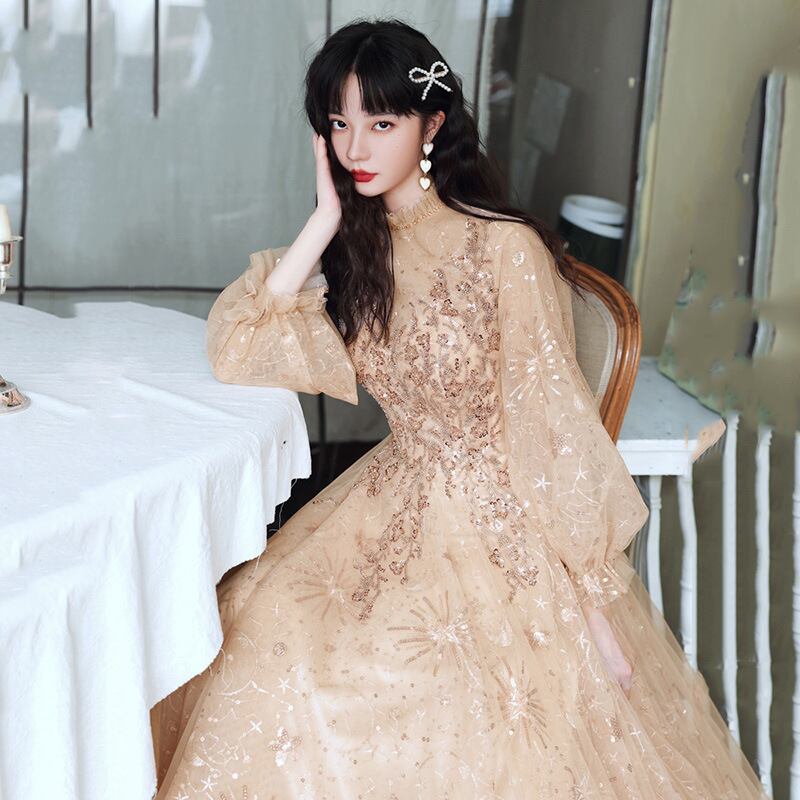【パーティードレス】大きいサイズ パーティードレス かっこいい 結婚式 お呼ばれドレス 結婚式のお呼ばれ ワンピース シンプル ロング ワンピース 20代 30代 40代 成人式 同窓会 卒業式 入学式 卒園式 入園式 謝恩会 袖あり 体型カバー フォーマルドレス 結婚式フォーマル お呼ばれ 二次会 フォーマルワンピース おしゃれ シャンパン S M L XL 2XL 3XL