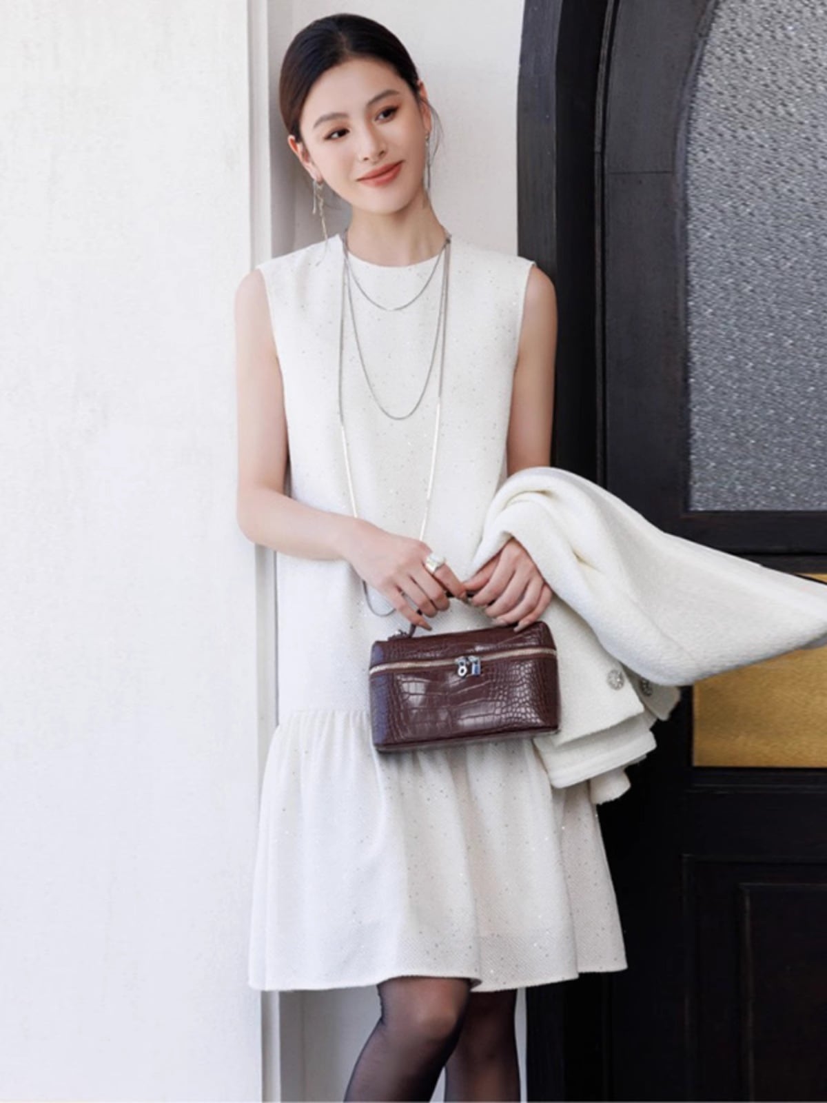 シックなカラーリングでミニ丈でも大人っぽく着こなせます。