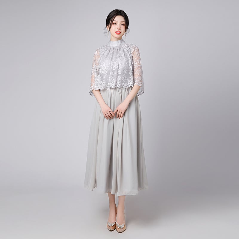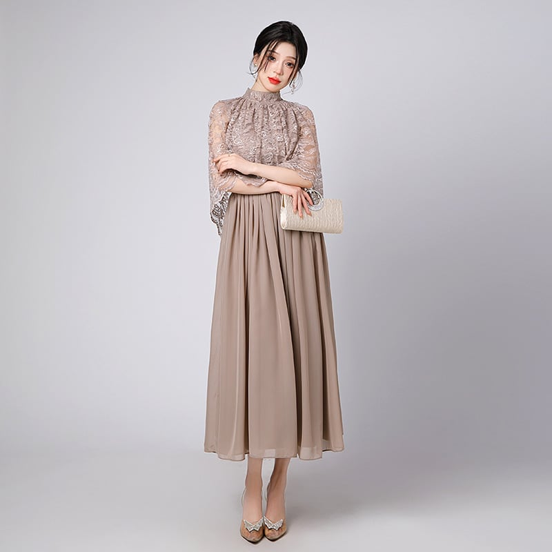 ドレープ感あるフレアシルエットで華やかな雰囲気に。