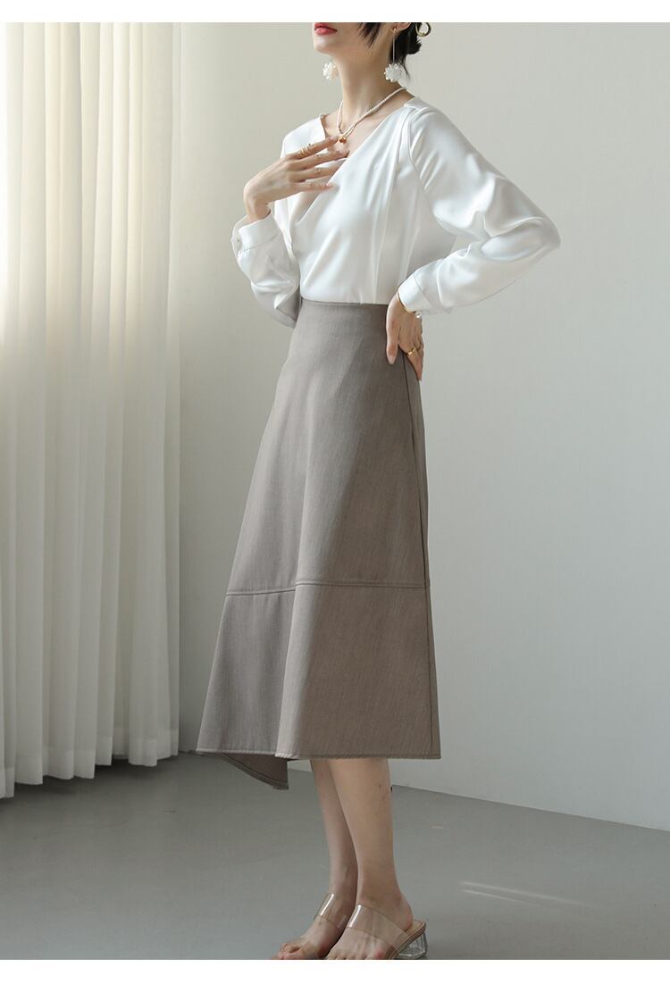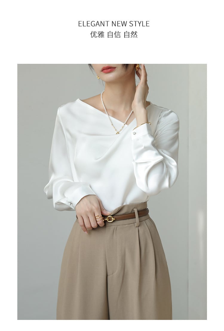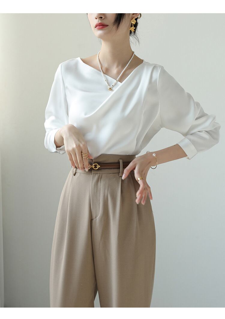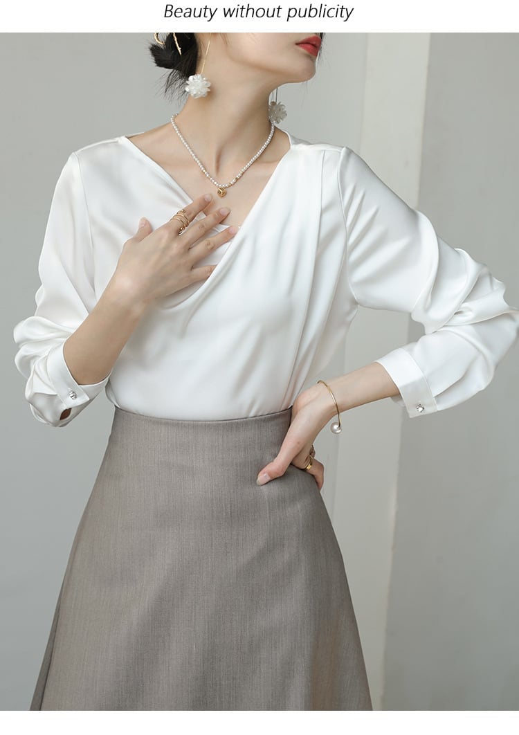 バストのドレープ感が女性らしいシンプルなブラウス。