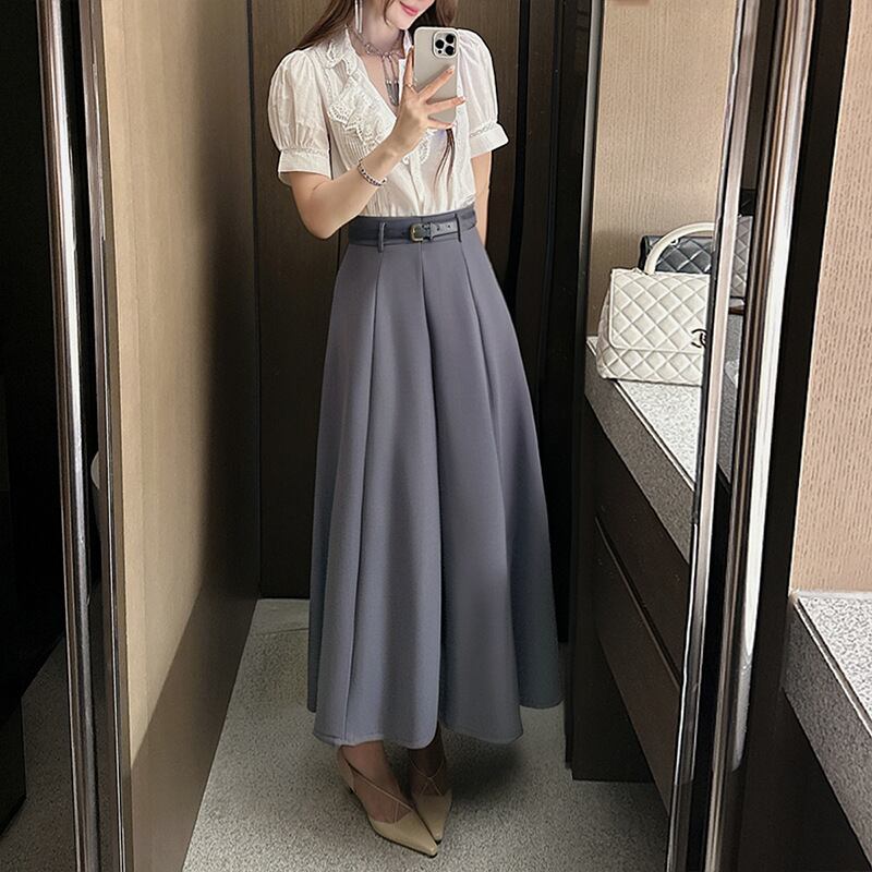大人エレガントなロング丈のaラインスカート。