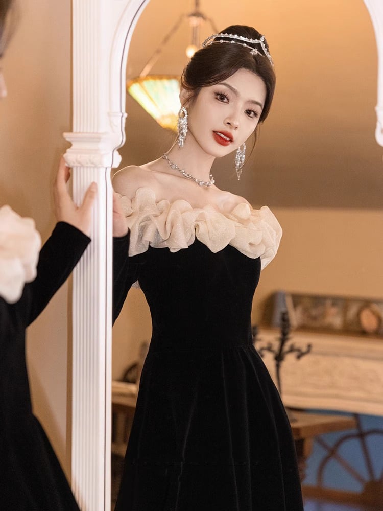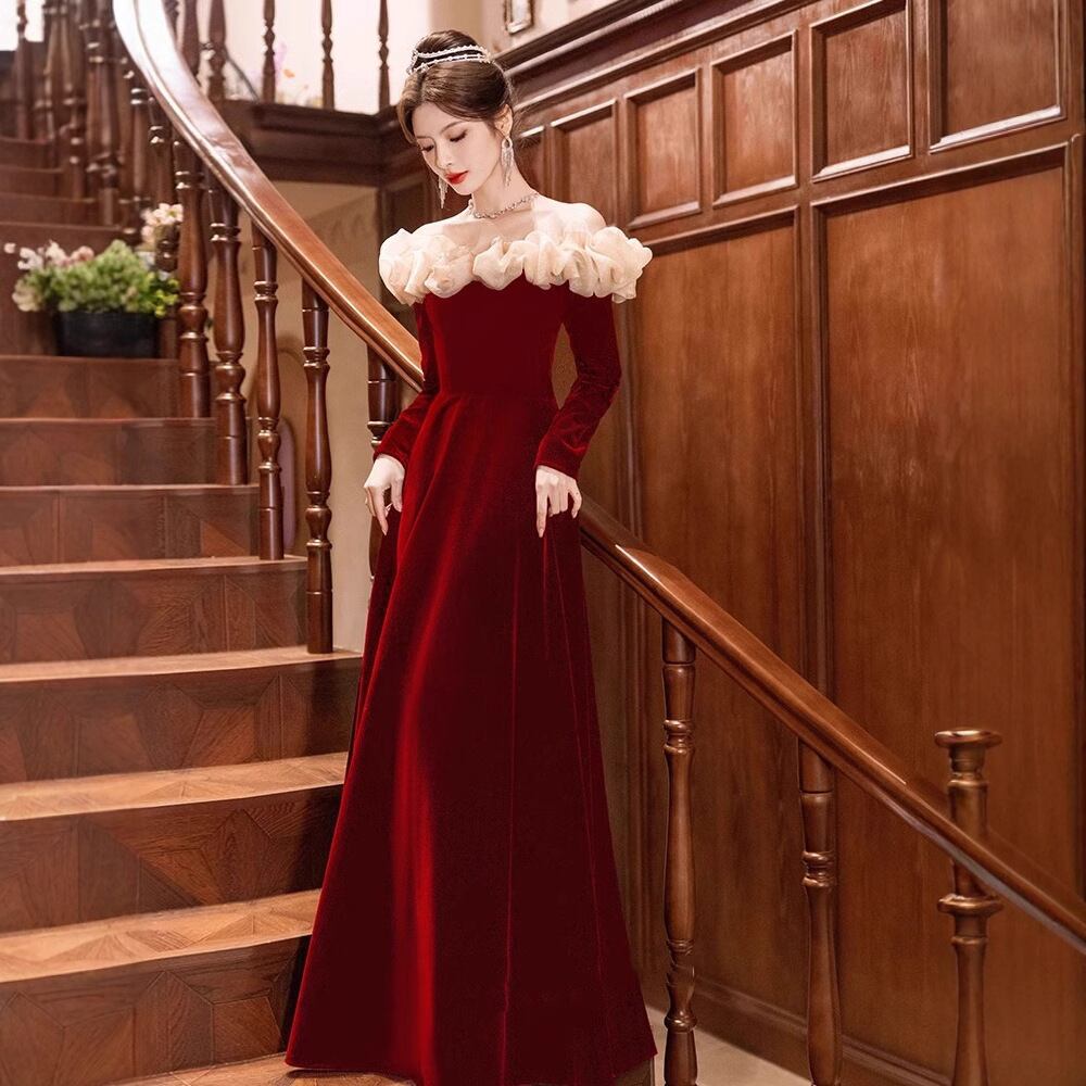 ベルベット素材で秋冬のウェディングシーンを彩るあでやかなスタイルに。