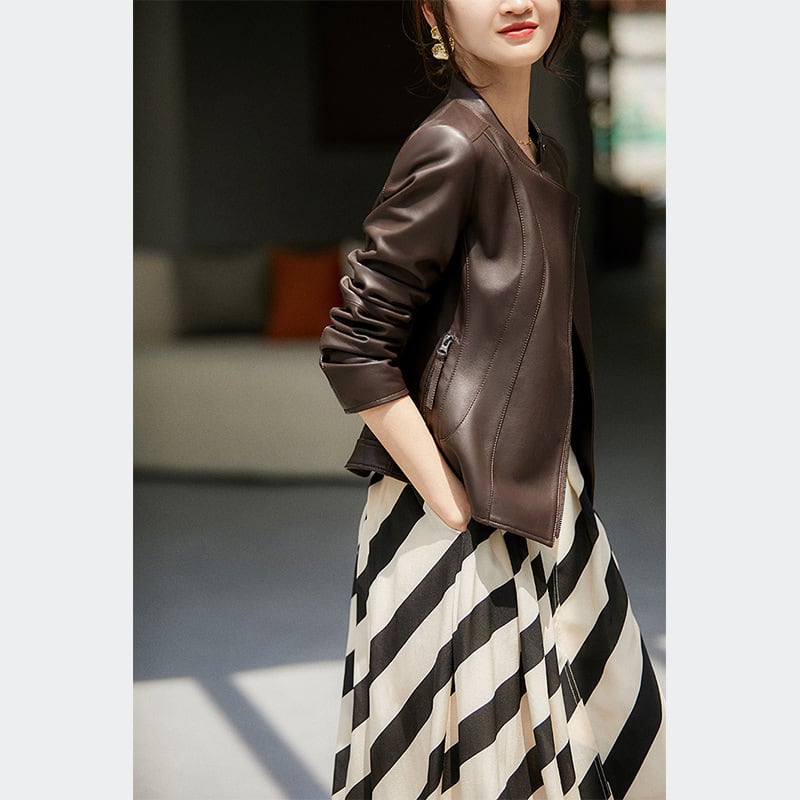 【ジャケット】 ライダース ジャケット レディース きれいめ アウター 20代 30代 40代 春 秋 冬 ライダース ジャケット ノーカラー ジャケット アウター カジュアル かっこいい 大人 可愛い ブラウン 茶色 ブラック 黒 S M L XL