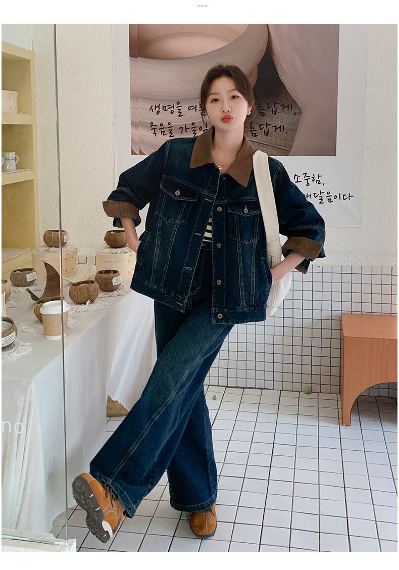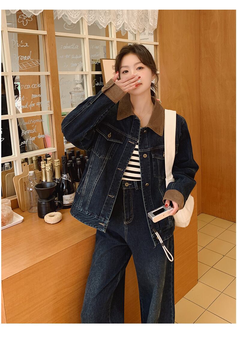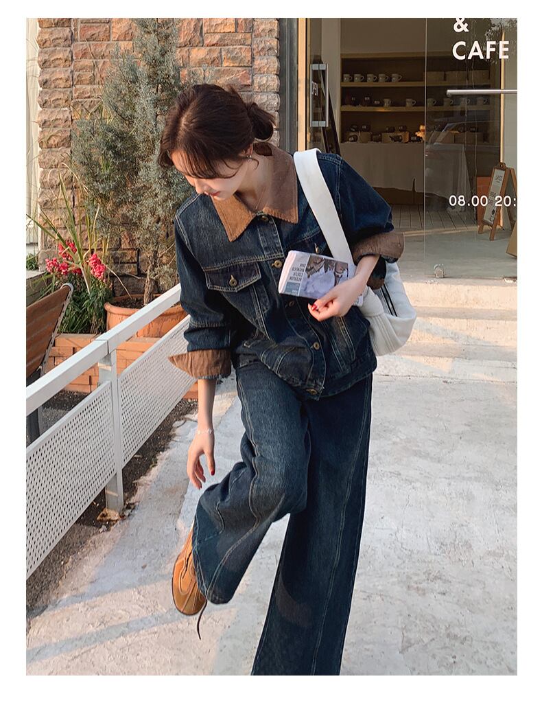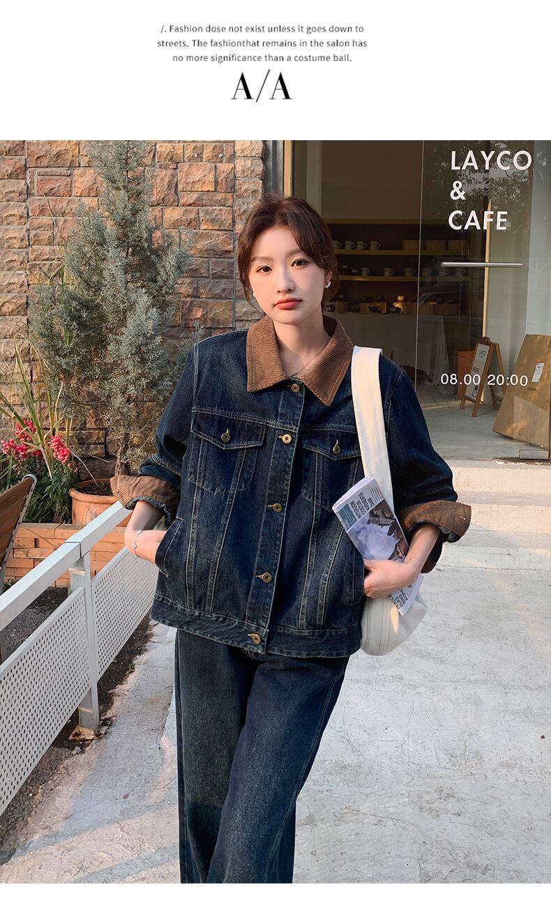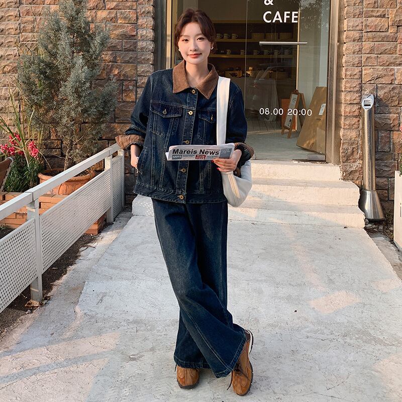 大人可愛いデニムジャケット+パンツのセットアップ。