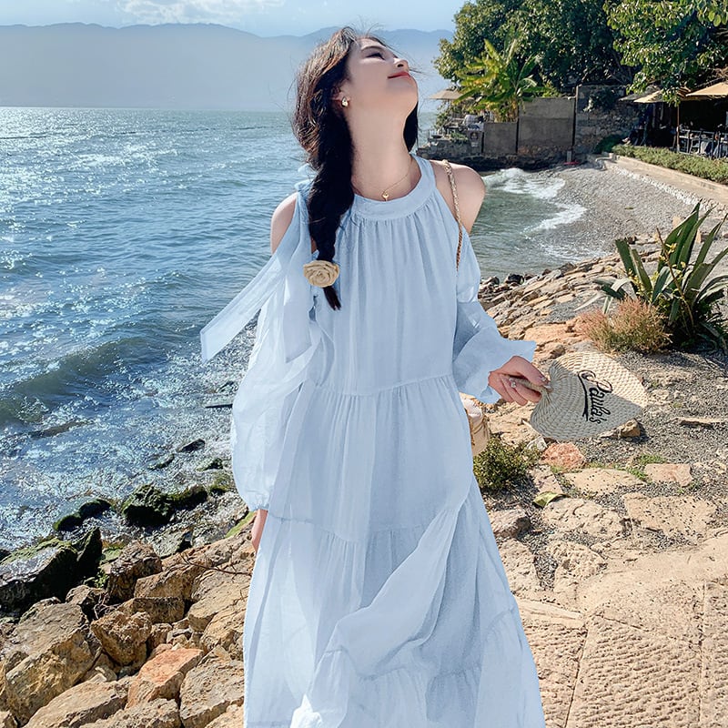 大人可愛いオープンショルダーのワンピース。