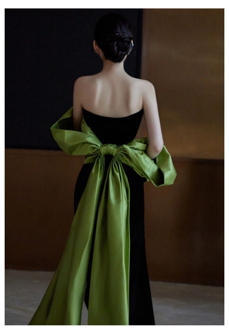 大きなサテン生地のバックリボンがエレガントなカラードレス。