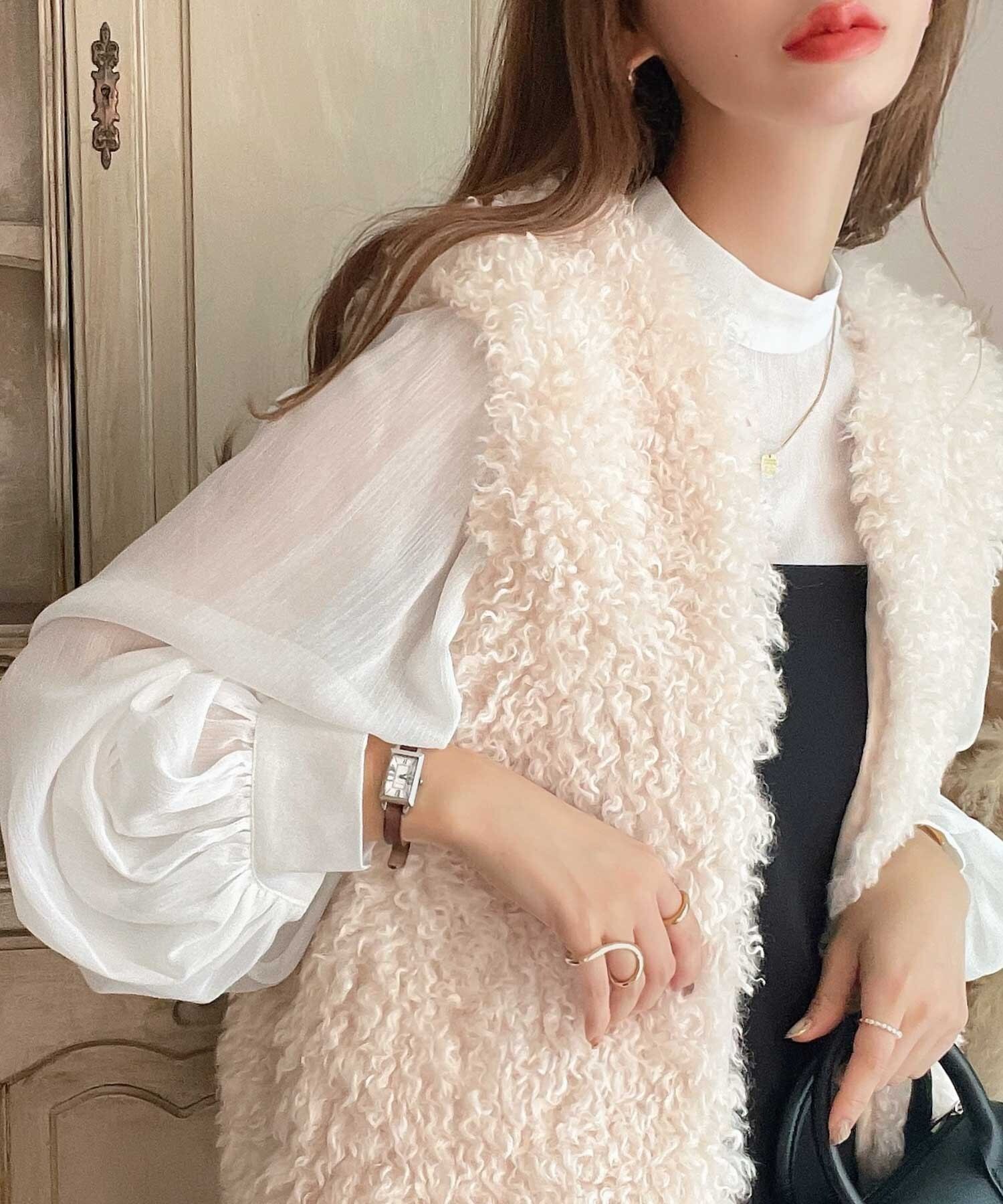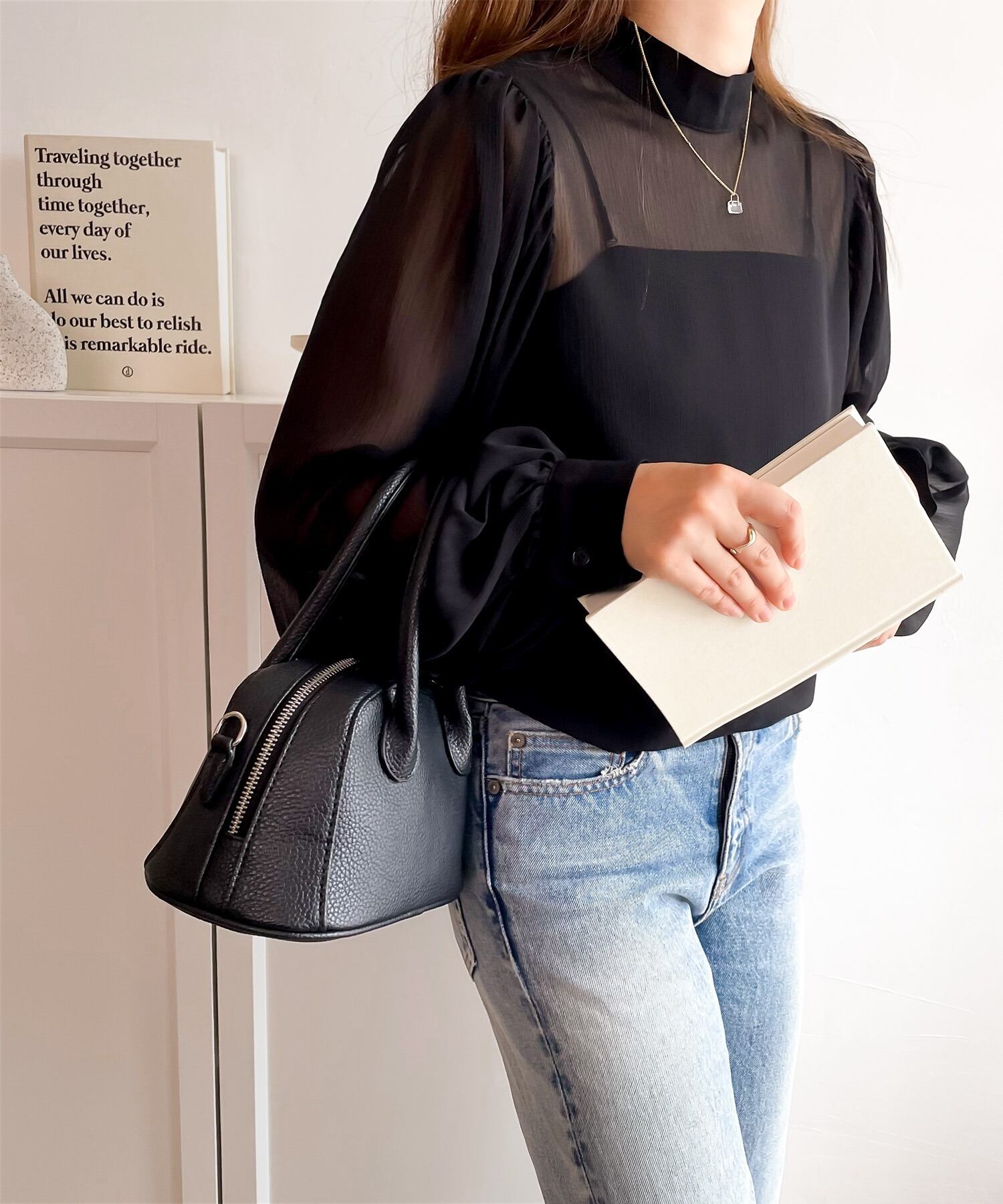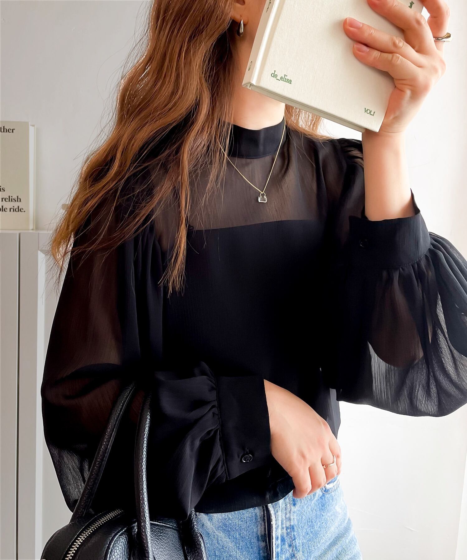 シアーな素材感の大人可愛いシンプルなブラウス。