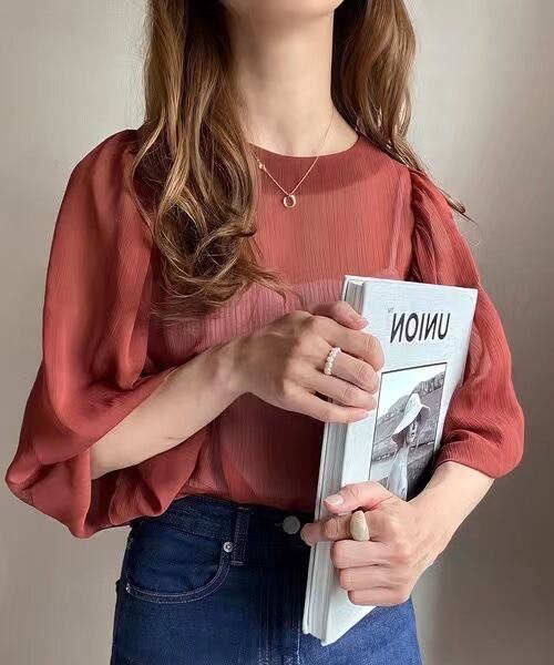 シアーな透け感のある大人可愛いシンプルなブラウス。
