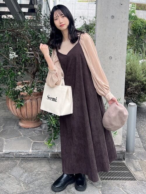 インナーにキャミソールを重ねて透け感が楽しめます。