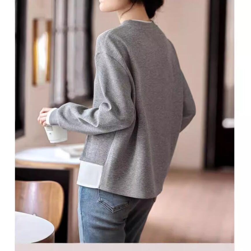 大人カジュアルなフェイクレイヤードのスウェットトレーナー。