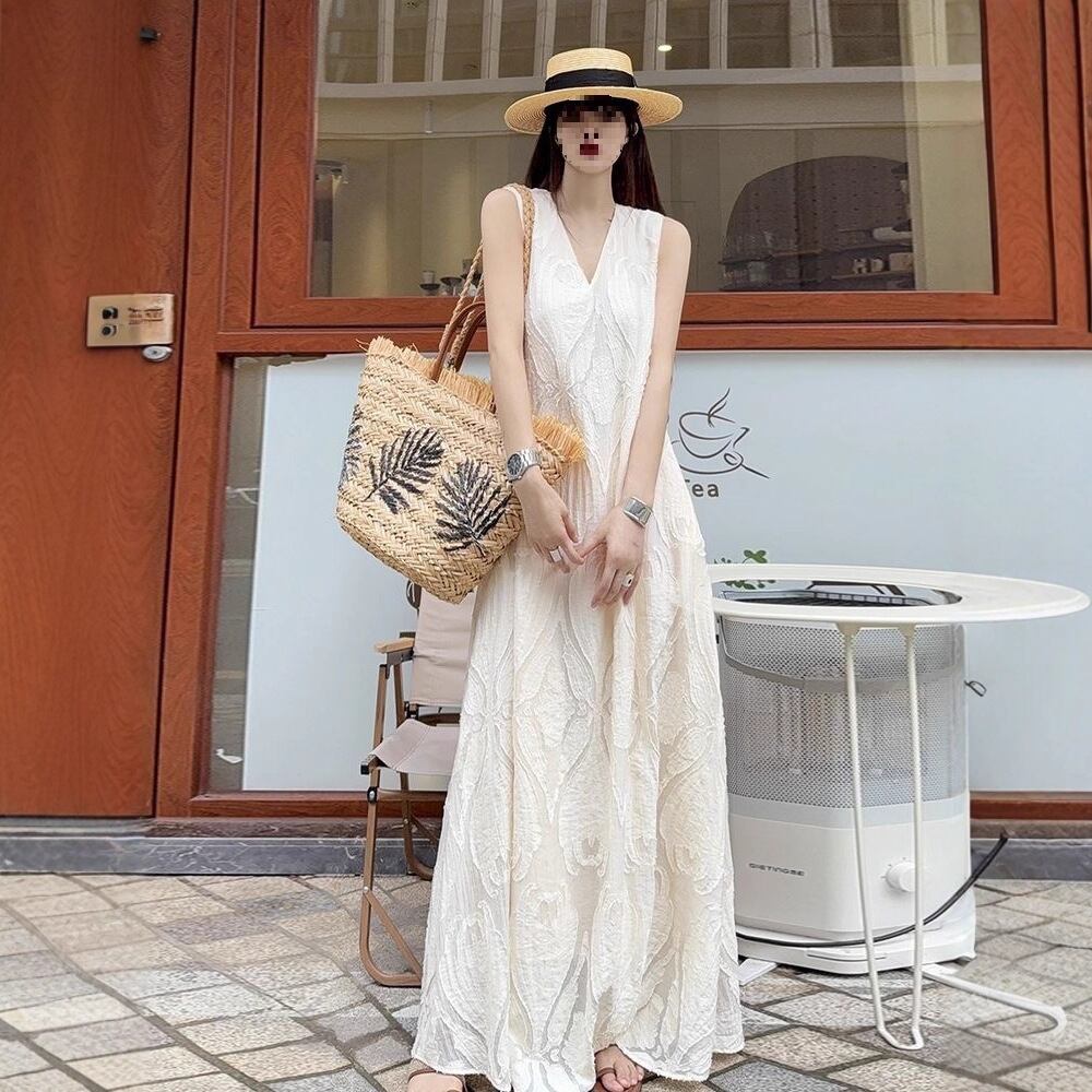 大人可愛いジャカード織りのリゾートワンピース。